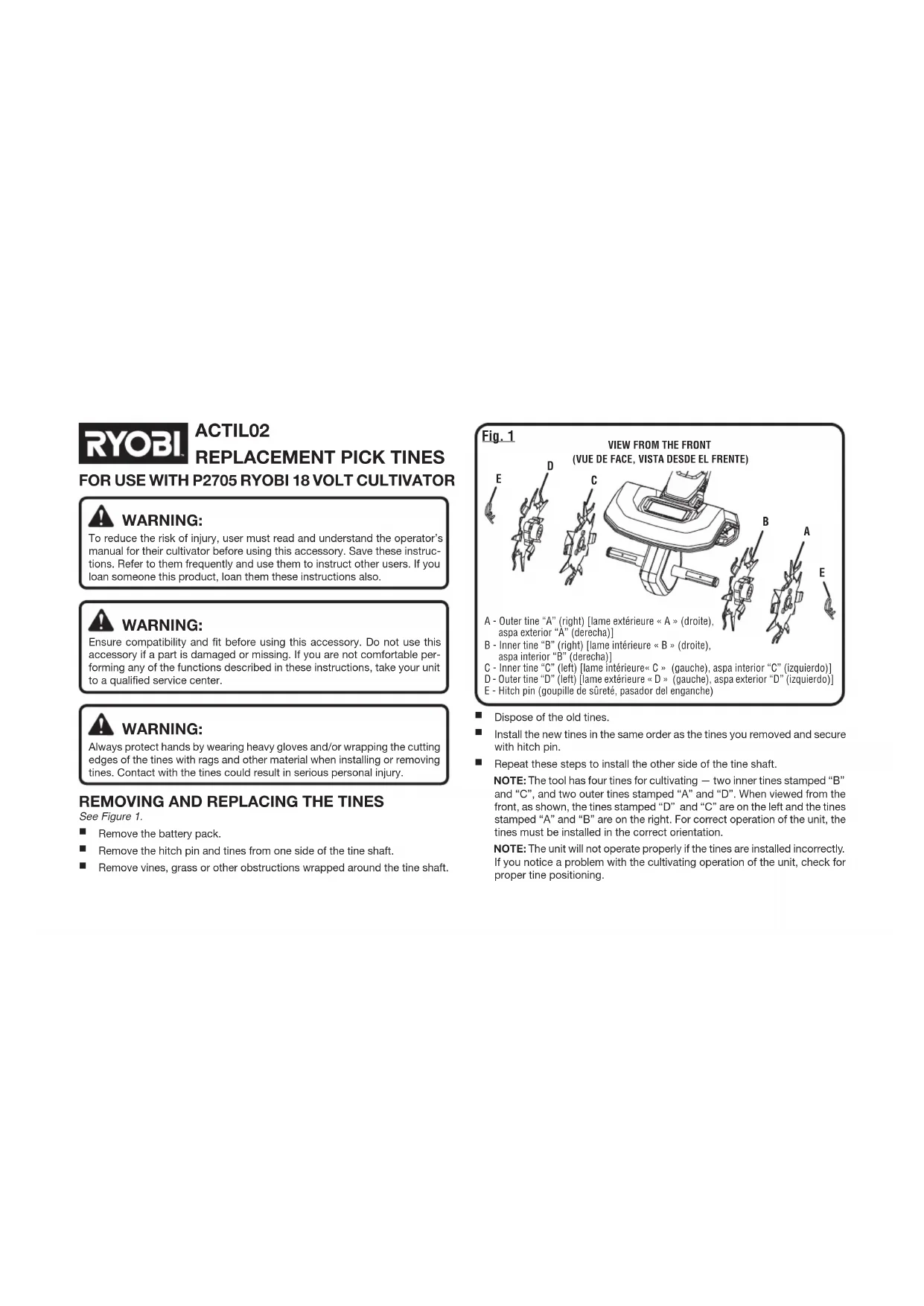 Retrouvez gratuitement la notice de l'appareil ACTIL02 RYOBI au format PDF.