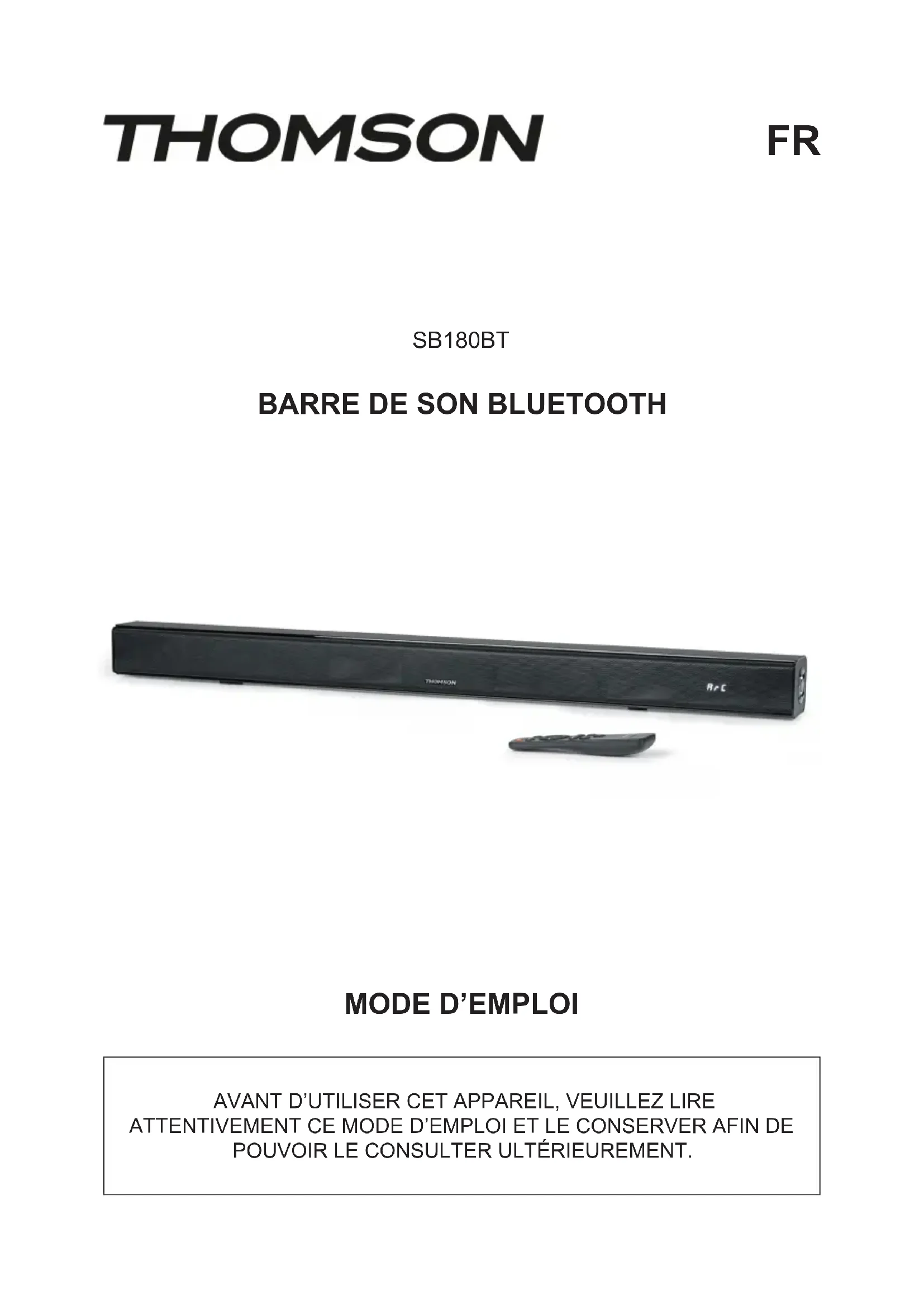Retrouvez gratuitement la notice de l'appareil SB180BT THOMSON au format PDF.