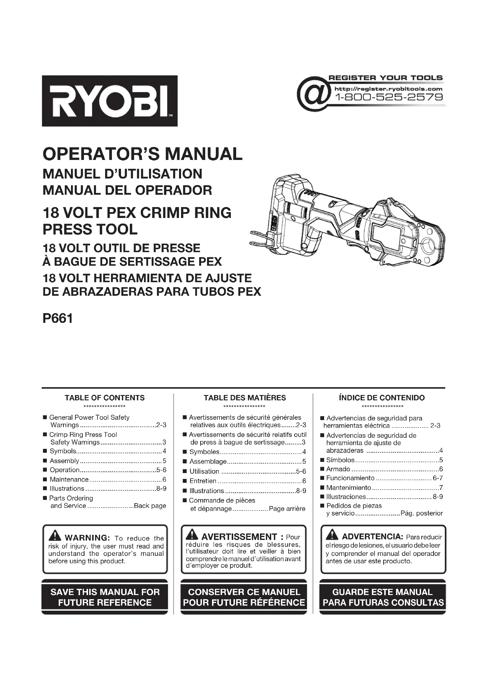 Retrouvez gratuitement la notice de l'appareil P661 RYOBI au format PDF.
