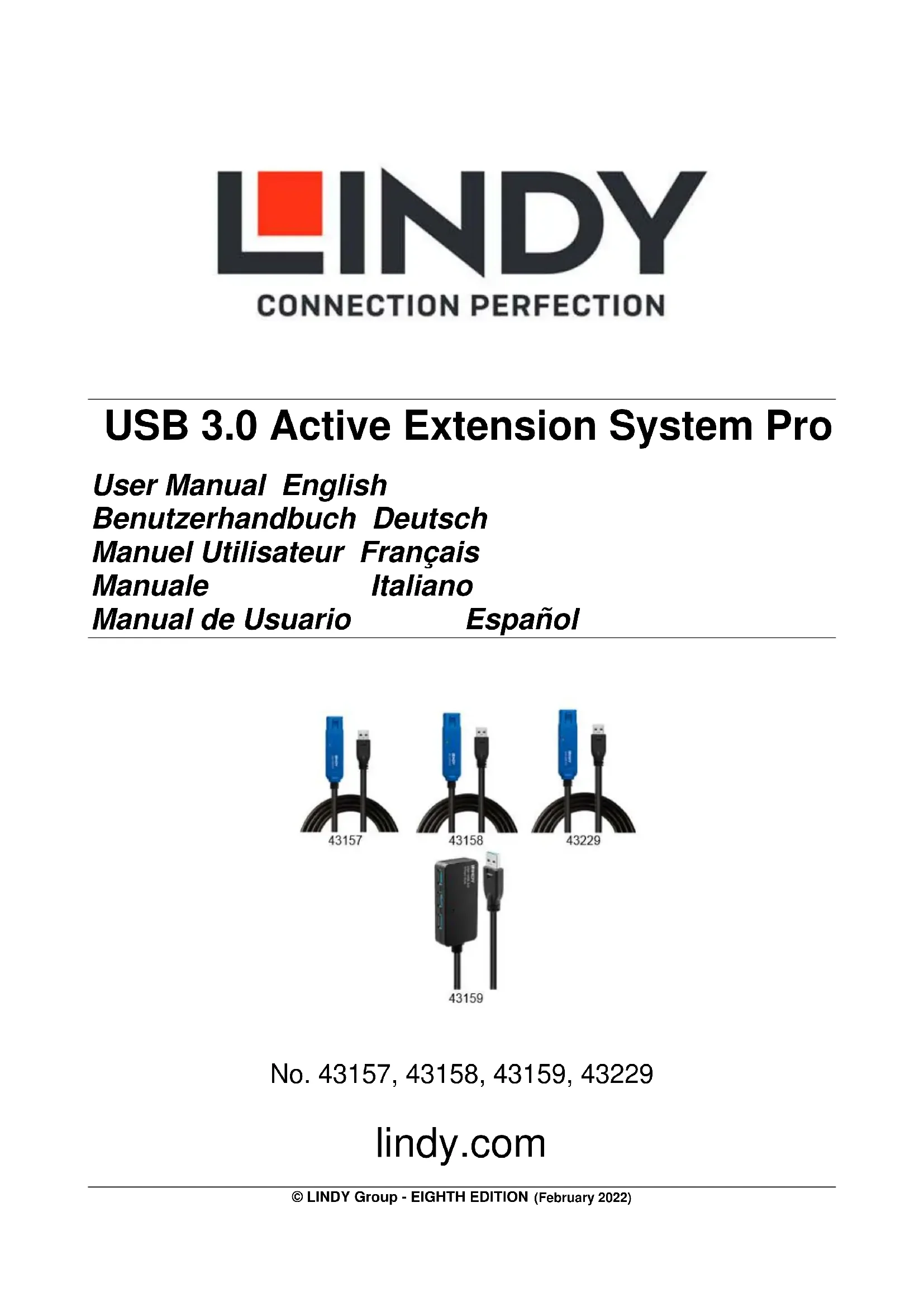 - Rallonge active USB 3.0 Pro 15m (No. 43229) Chaque rallonge peut être utilisé seule ou dans le cadre du système actif d'extension Pro de Lindy pour créer des systèmes d'extension jusqu’à 40 m (en fonction de la configuration de câble utilisée). Caractéristiques