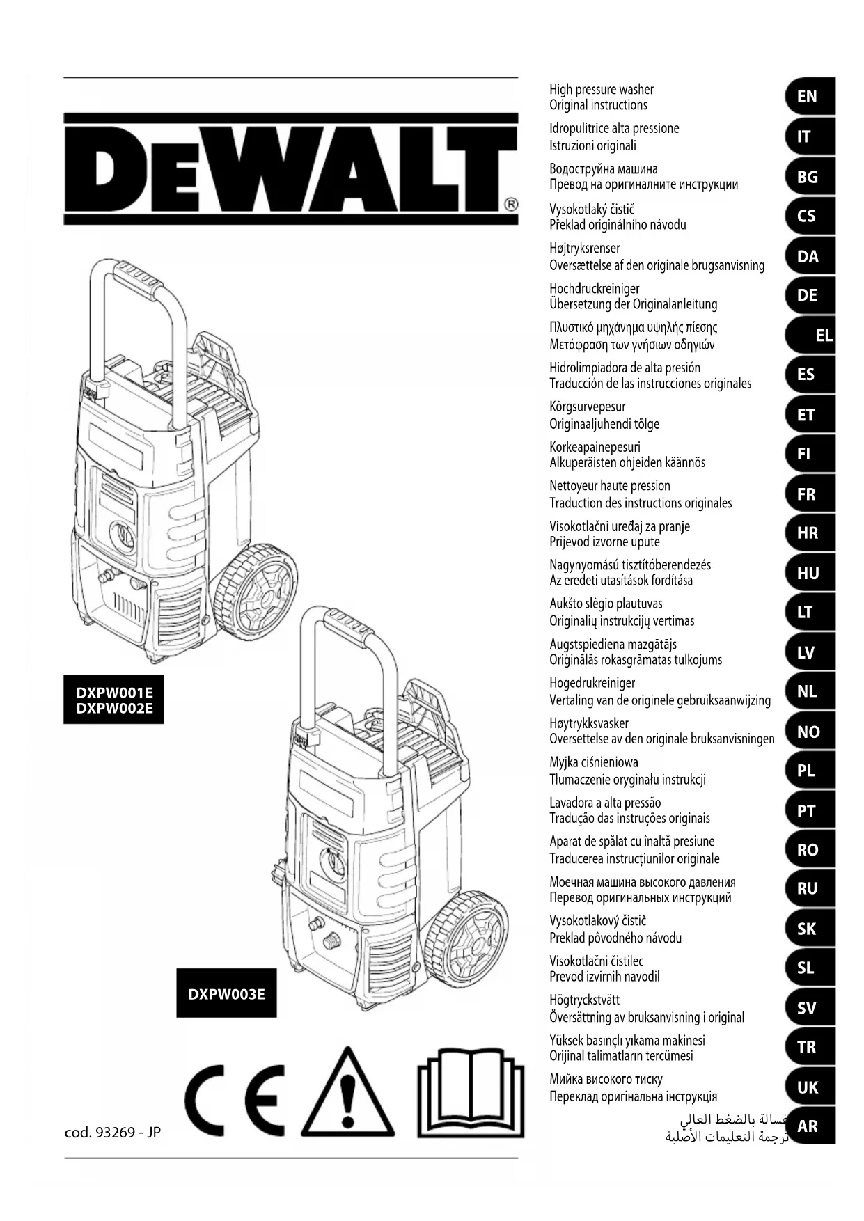 DXPW001E - Nettoyeur haute pressio DEWALT - Notice d'utilisation et mode d'emploi gratuit