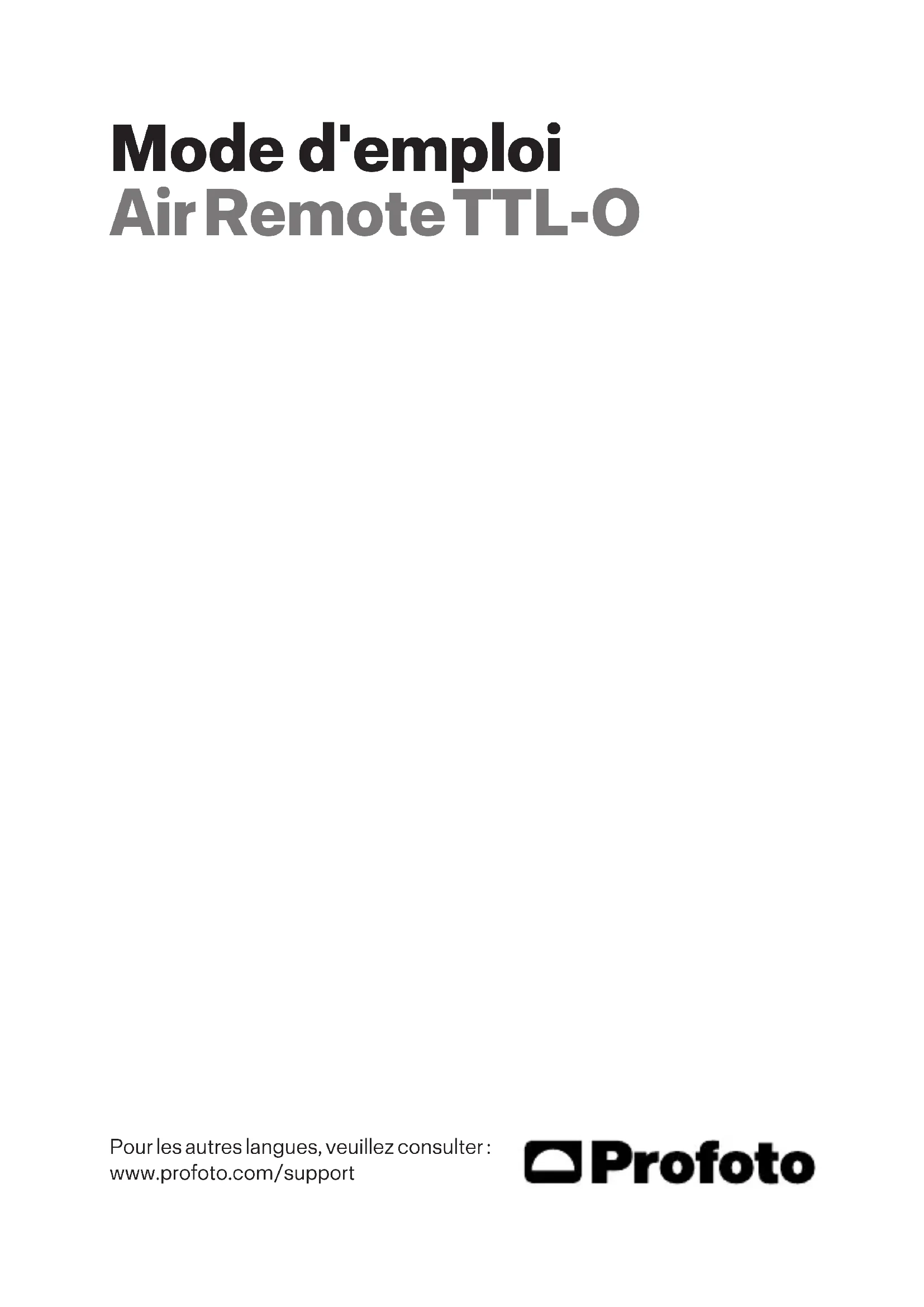 Pour les autres langues, veuillez consulter : www.profoto.com/support Mode d'emploi Air Remote TTL-OAir Remote TTL-O