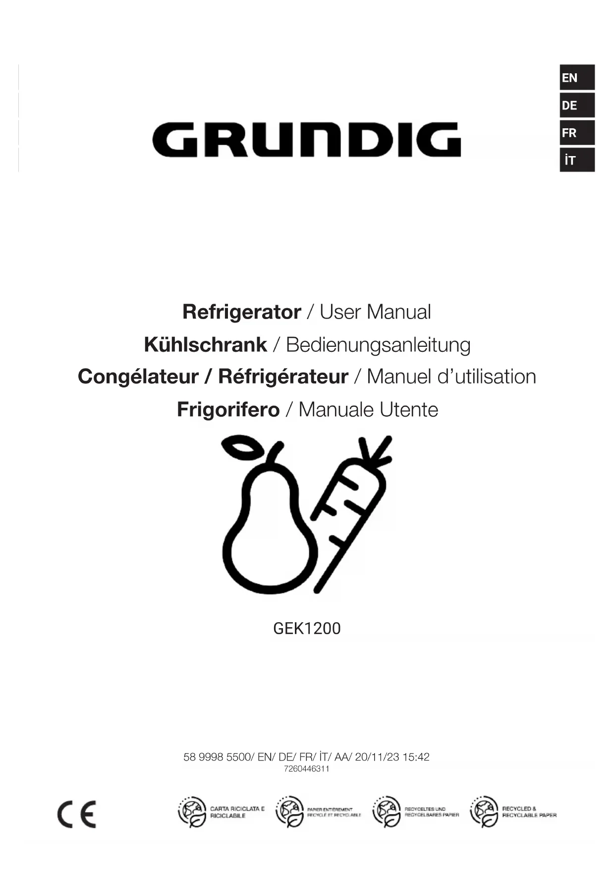 GEK1200 - Réfrigérateur GRUNDIG - Notice d'utilisation et mode d'emploi gratuit