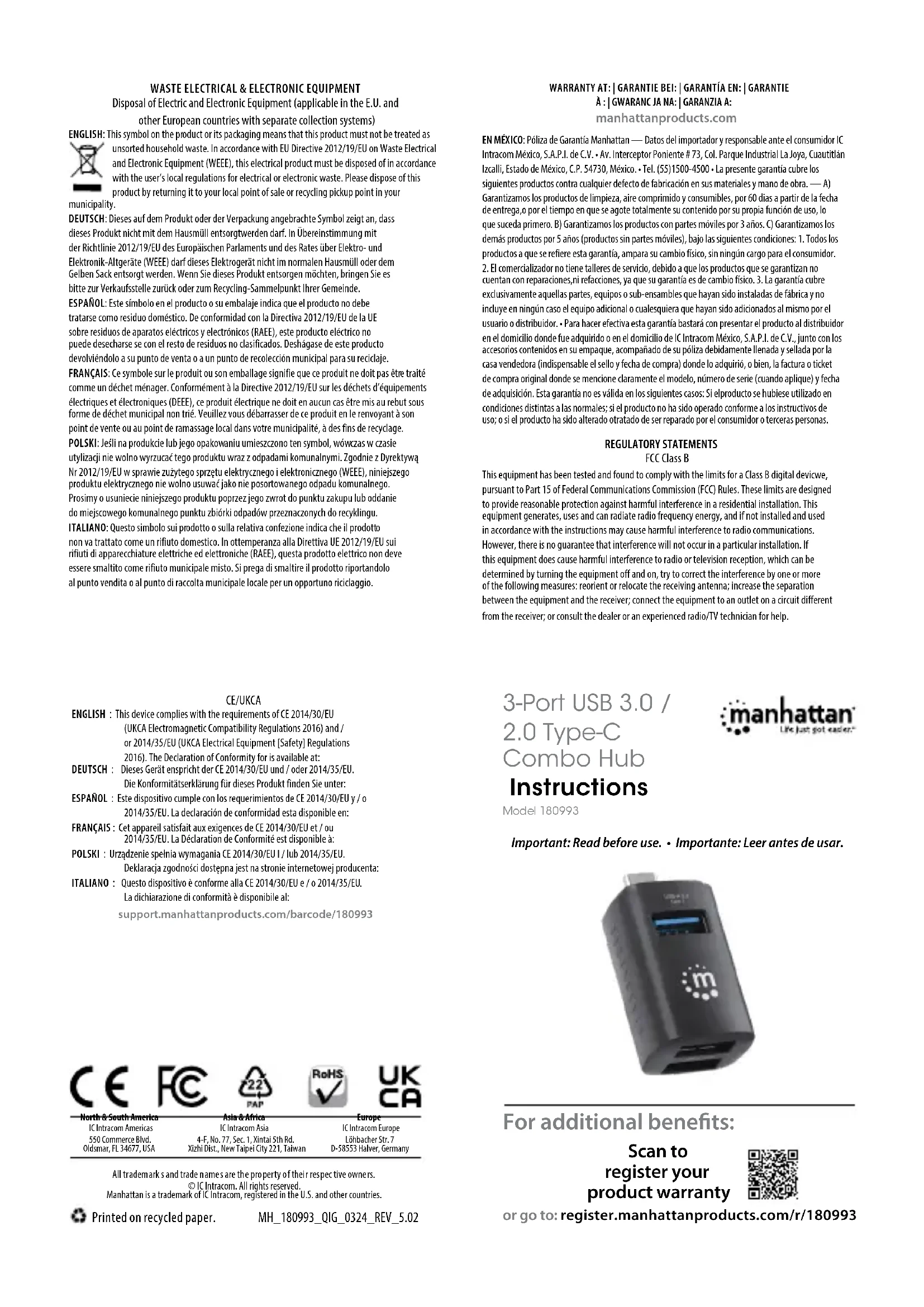 180993 - USB hub MANHATTAN - Notice d'utilisation et mode d'emploi gratuit