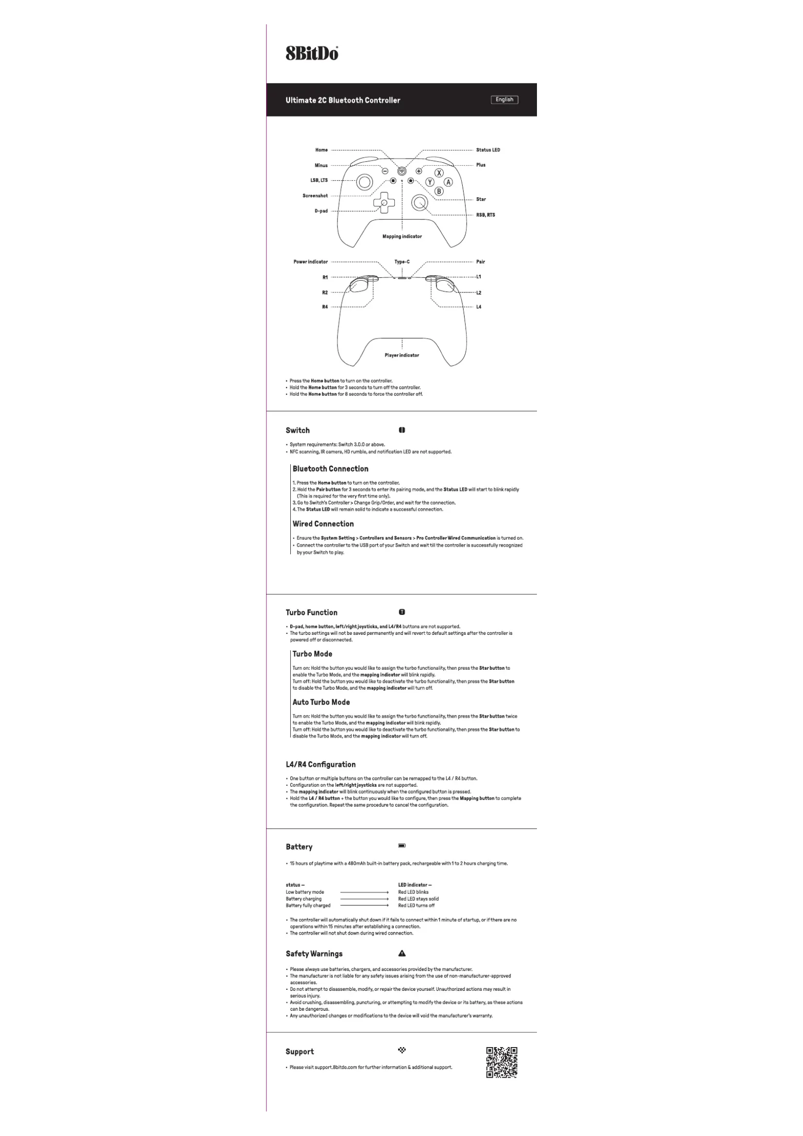 Retrouvez gratuitement la notice de l'appareil Ultimate 2C 8BitDo au format PDF.