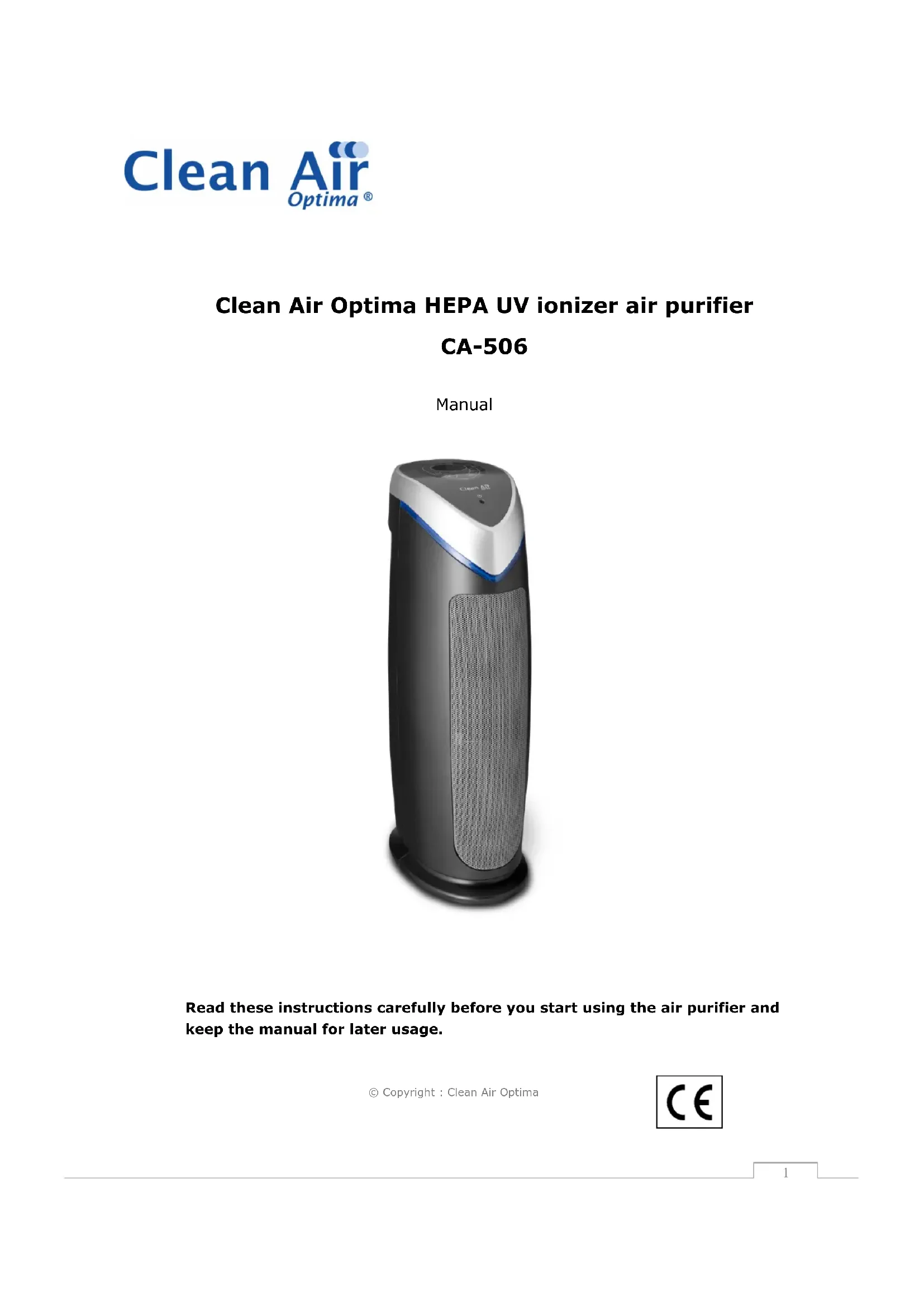 Retrouvez gratuitement la notice de l'appareil CA-506 Clean Air Optima au format PDF.