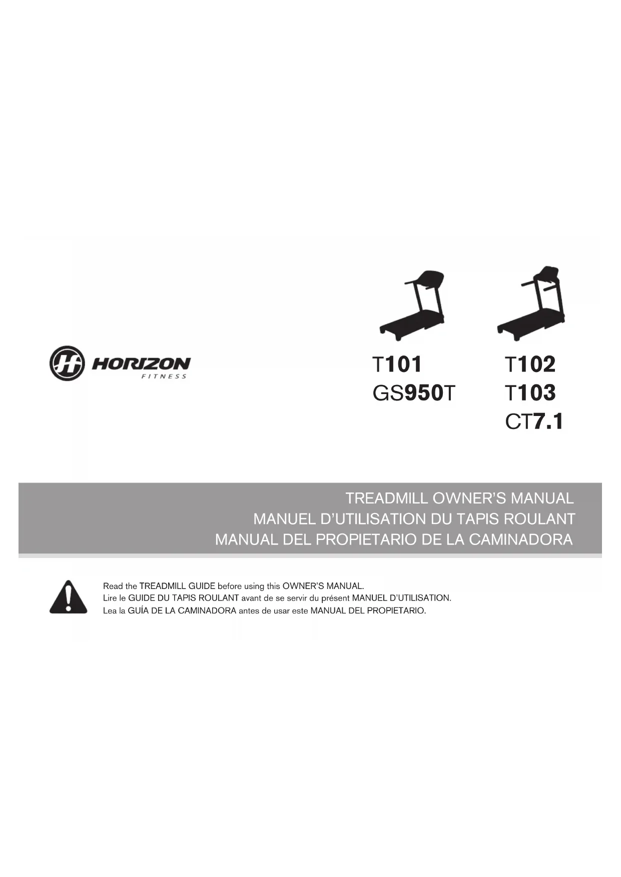 Retrouvez gratuitement la notice de l'appareil T102 Horizon Fitness au format PDF.