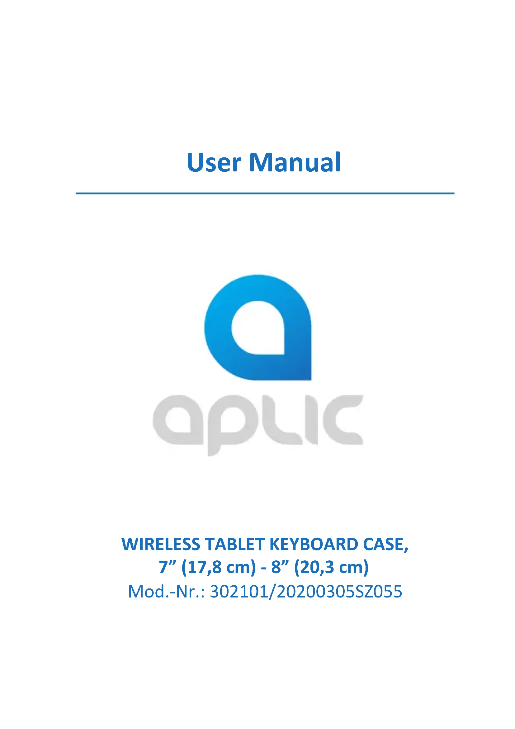 Acvez tout d’abord la foncon Bluetooth de votre tablee ou smartphone. Al- lumez ensuite le clavier. Pour ce faire, poussez l’interrupteur marche/arrêt vers la droite. Le voyant d’alimentaon du clavier s’allume en bleu pendant environ 5 secondes. Appuyez sur la touche « Connect » du clavier. Dès que le voyant au-des- sus du symbole Bluetooth du clavier commence à clignoter, l’appareil est en mode couplage. Procédez ensuite à une recherche sur votre tablee ou Smartphone et connectez l'appareil à« aplic-302101 ». L’appareil vous montre un code de sécurité. Saisissez-le sur le clavier et puis conrmez en appuyant sur la touche « Enter ». La connexion est établie.