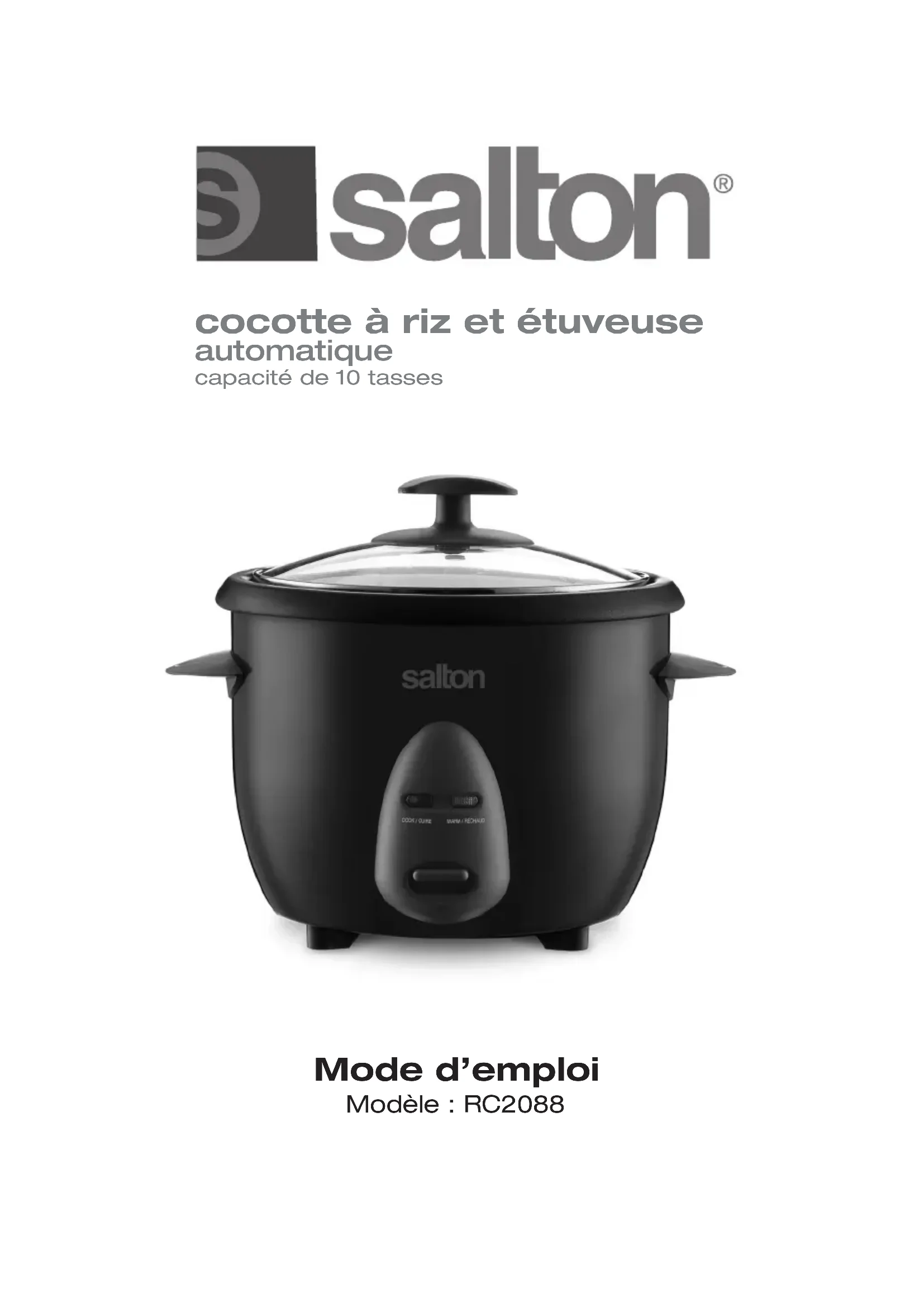 RC2088 - Cuiseur à riz Salton - Notice d'utilisation et mode d'emploi gratuit