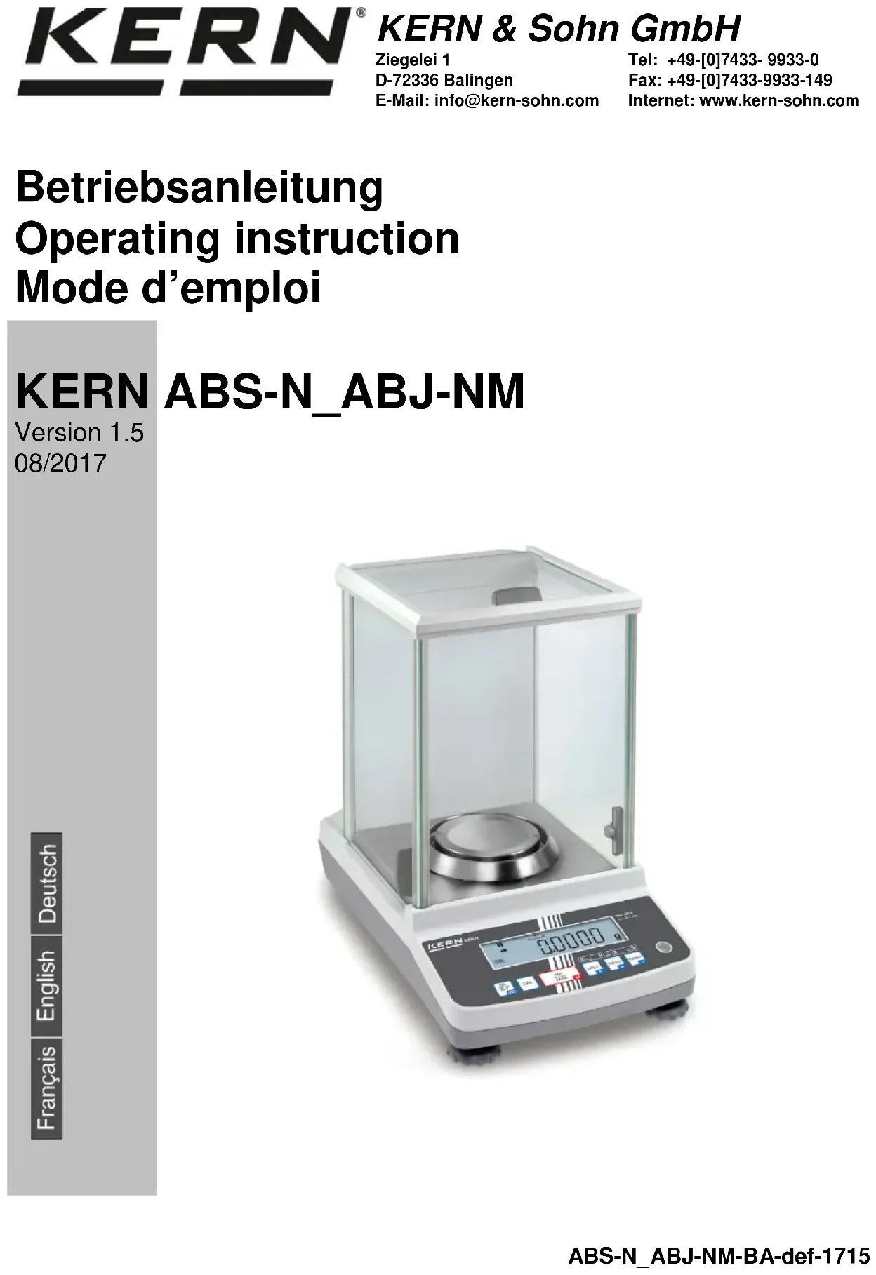Retrouvez gratuitement la notice de l'appareil ABJ 320-4NM Kern au format PDF.