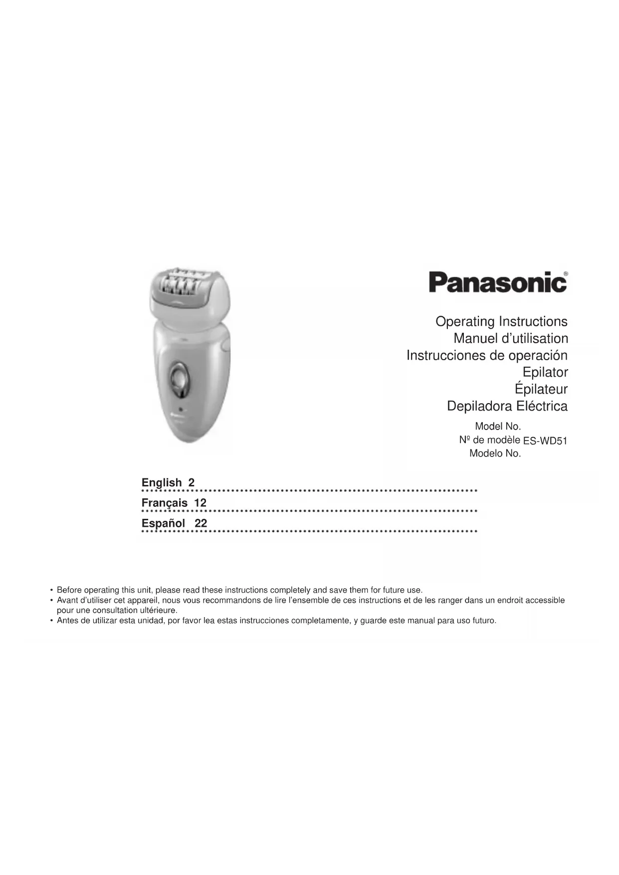 Retrouvez gratuitement la notice de l'appareil ES-WD51 PANASONIC au format PDF.