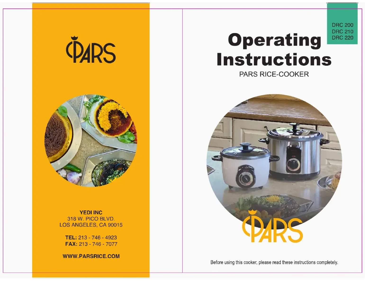 DRC 220 - Cuiseur à riz Pars - Notice d'utilisation et mode d'emploi gratuit
