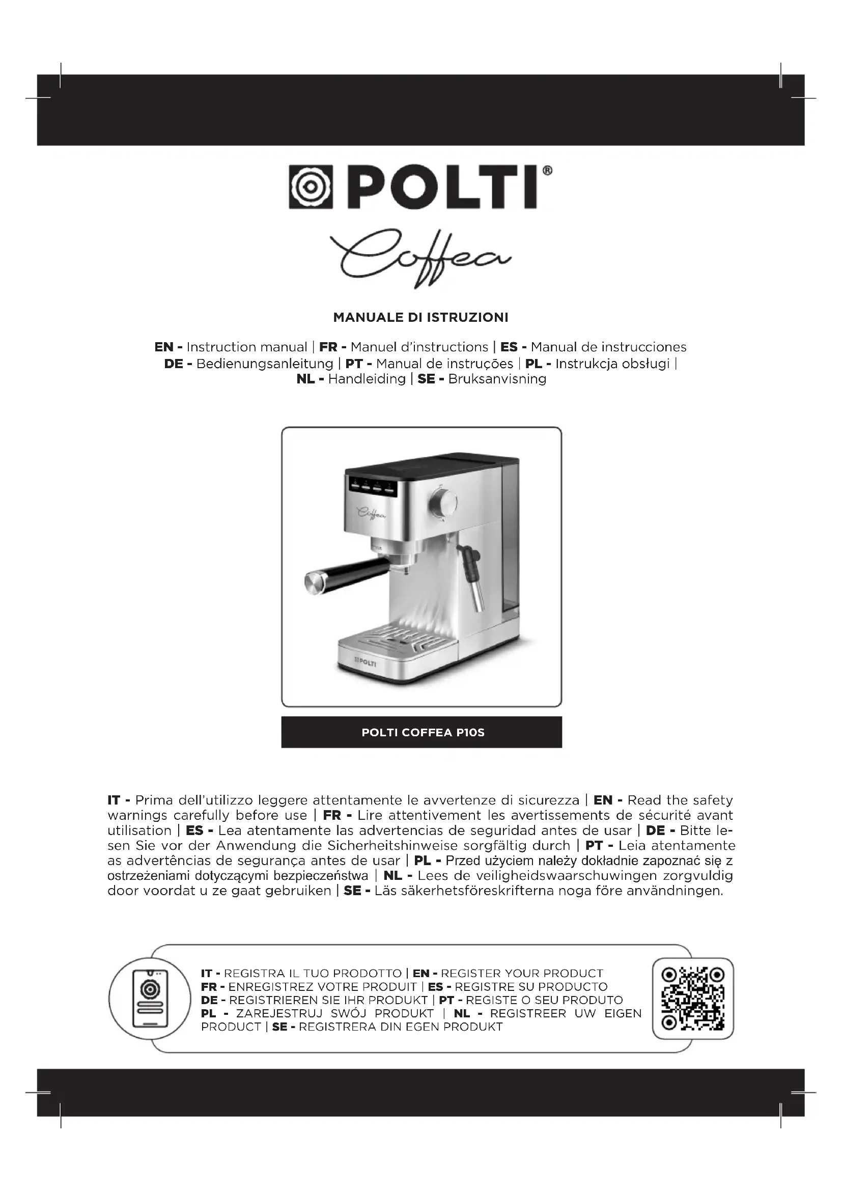 Retrouvez gratuitement la notice de l'appareil Coffea P10S POLTI au format PDF.