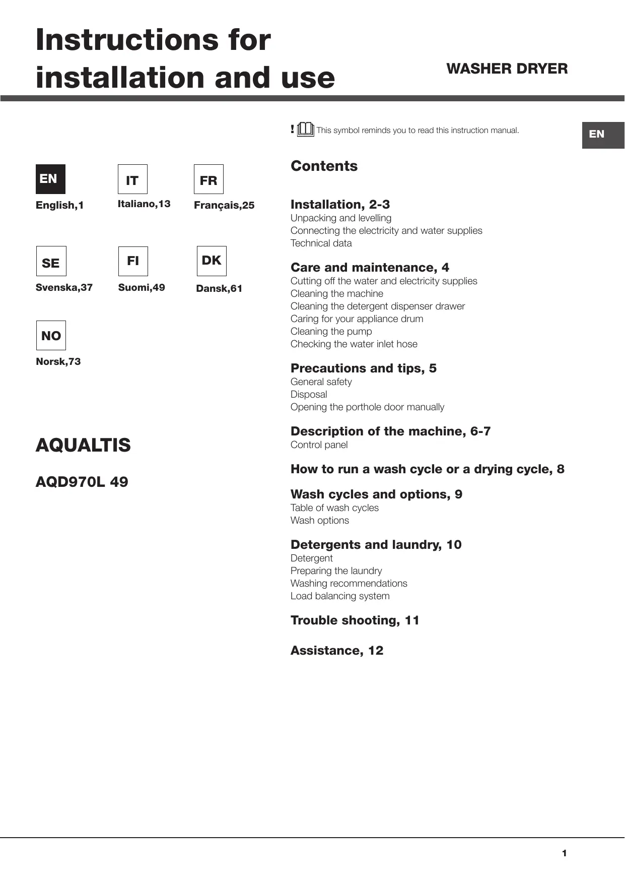 Retrouvez gratuitement la notice de l'appareil AQD970L 49 EU HOTPOINT au format PDF.