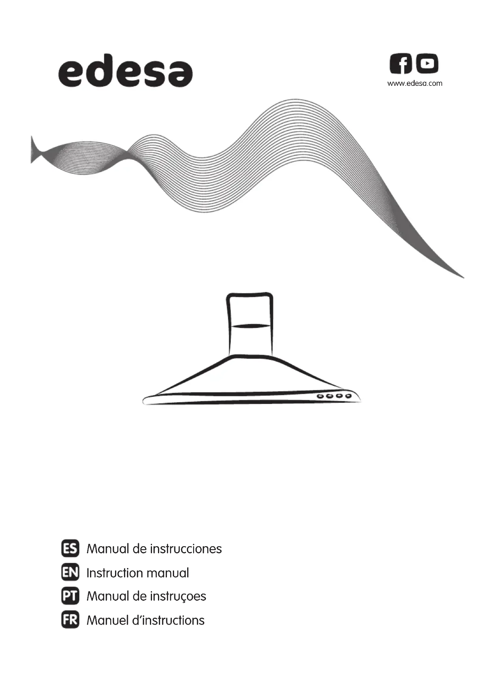 d’avertissement de nettoyage des filtres 4-Marche / arrêt de l’éclairage. 5-Bouton-poussoir de diminution d’intensité de lumière 6-Bouton-poussoir (6 ) d’augmentation d’intensité de lumière Minuterie: l’extracteur fonctionne 5 min. à la vitesse choisie et 5 min. supplémentaires à chacune des vitesses inférieures jusqu’à ce qu’il s’arrête. Avertissement de nettoyage du filtre: lorsque le capot est éteint et que l’indicateur de minuterie clignote, les filtres à graisse doivent être nettoyés. Pour arrêter le clignotement, appuyez sur l’indicateur de la minuterie, et le compteur des heures de fonctionnement de la sonnerie sera remis à 0. Entretien de la hotte Attention: coupez toujours l’alimentation électrique avant d’intervenir sur la hotte. En cas de défaut, contactez un distributeur officiel ou un agent agréé. Nettoyage externe : utilisez du détergent liquide, non corrosif et évitez l’utilisation de produits de nettoyage abrasifs et de dissolvants. N’utilisez pas de dispositifs de nettoyage à haute pression ou à vapeur. Filtres à graisse (Fig. 5): Il y a risque d’incendie si le nettoyage n’ est pas effectué conformément aux instructions Pour cela, démontez les filtres et lavez-les à l’ eau chaude et avec du détergent neutre. Ne pas utiliser de liquide de rinçage. Si vous utilisez un lave-vaisselle (les pièces métalliques pourraient noircir sans que leur bon fonctionnement ne soit affecté), disposez les filtres à la verticale afin d’éviter le dépôt de résidus solides. Filtres à charbon actif : ils doivent être remplacés tous les trois mois. Important: augmentez la fréquence de nettoyage / remplacement des filtres si la hotte est utilisée plus de 2 heures par jour. Utilisez toujours des filtres d’origine du fabricant. Remplacement des ampoules (Fig. 6) Attention: ne manipulez pas les ampoules avant d’avoir coupé l’alimentation électrique et que leur température n’ait baissé. Important: utilisez des ampoules neuves conformément à ce qui apparaît sur la plaque signalétique de la hotte. En cas d’éclairage LED, ne regardez pas directement la lumière. N’utilisez pas d’ampoules dichroïques - risque de surchauffe. Pour obtenir des lampes LED de rechange, contactez le Service technique ou un distributeur de la marque. En cas de panne éventuelle, avant de contacter le service technique, consultez le tableau suivant:CNA group Oficinas: c/ Anabel Segura, 11, Edif. A, 3a pl. 28108. Alcobendas. Madrid. España Fábrica: c/ del Ter 2, Apdo. 9. 08570. Torelló.Barcelona. España www.edesa.com Sticker RATING PLATE