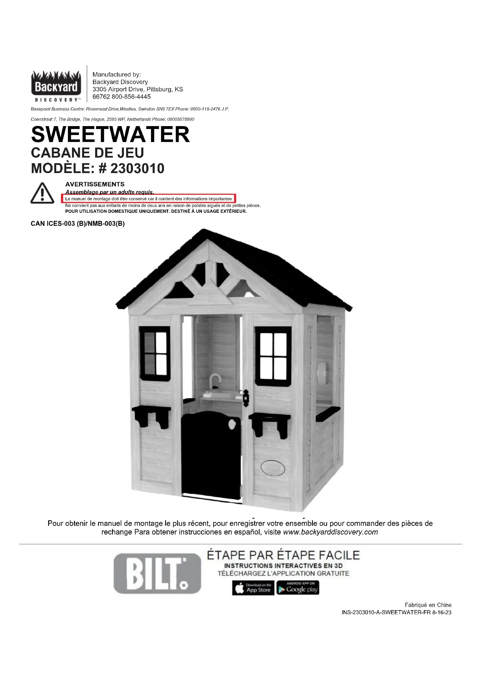 MODE D'EMPLOI Sweetwater White Backyard Discovery