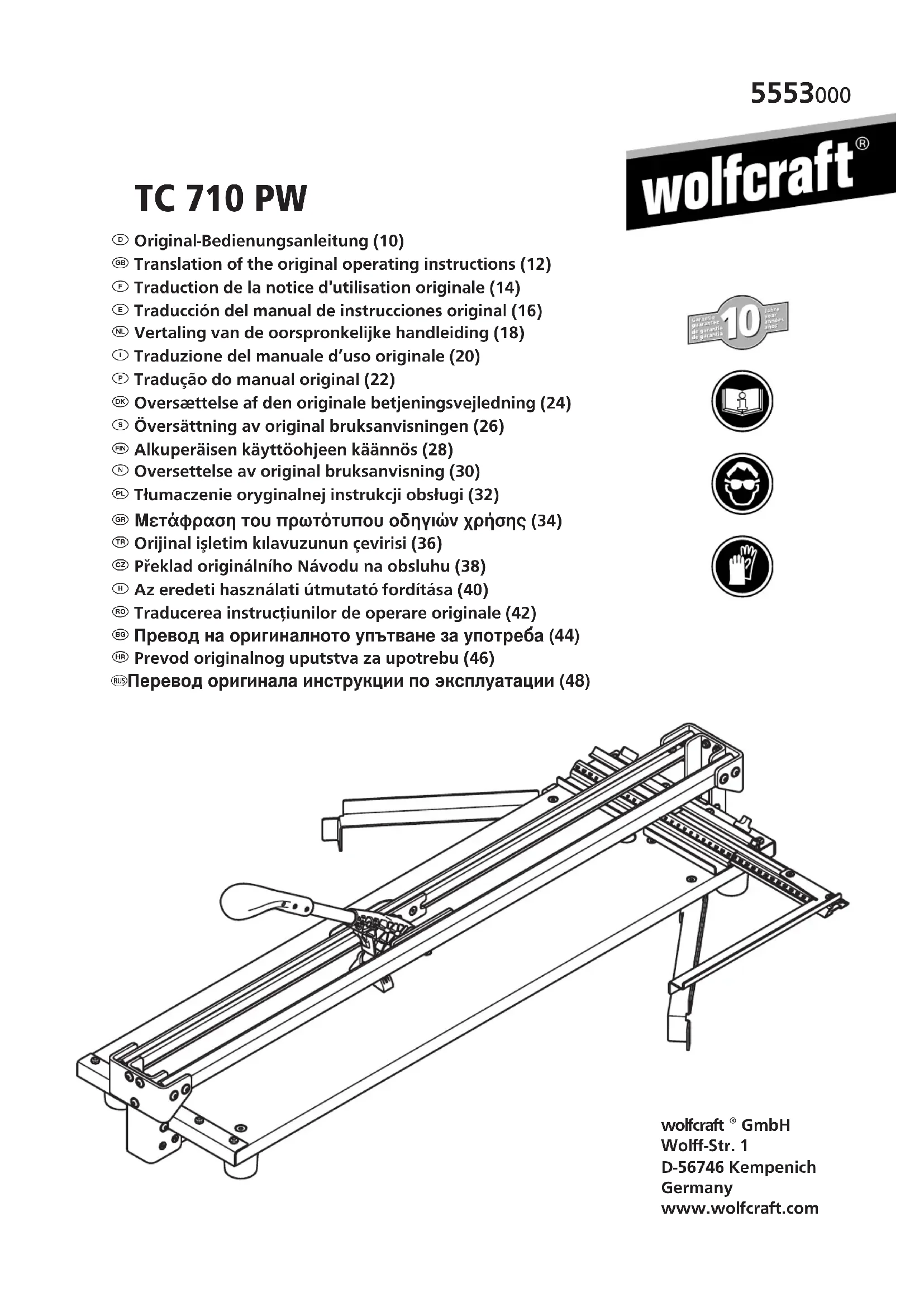 TC 710 PW - Trancheuse WOLFCRAFT - Notice d'utilisation et mode d'emploi gratuit