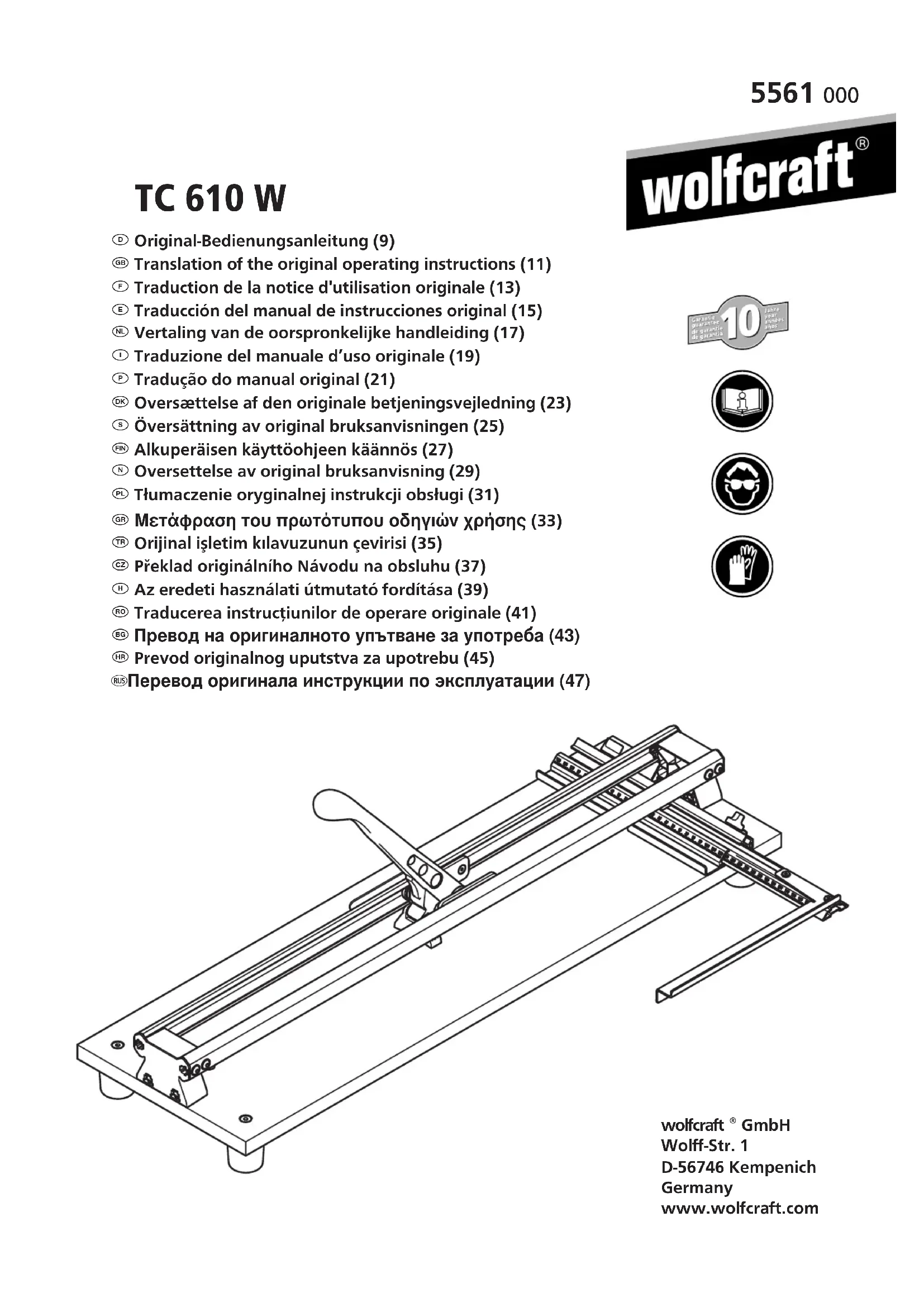 TC 610 W - Trancheuse WOLFCRAFT - Notice d'utilisation et mode d'emploi gratuit