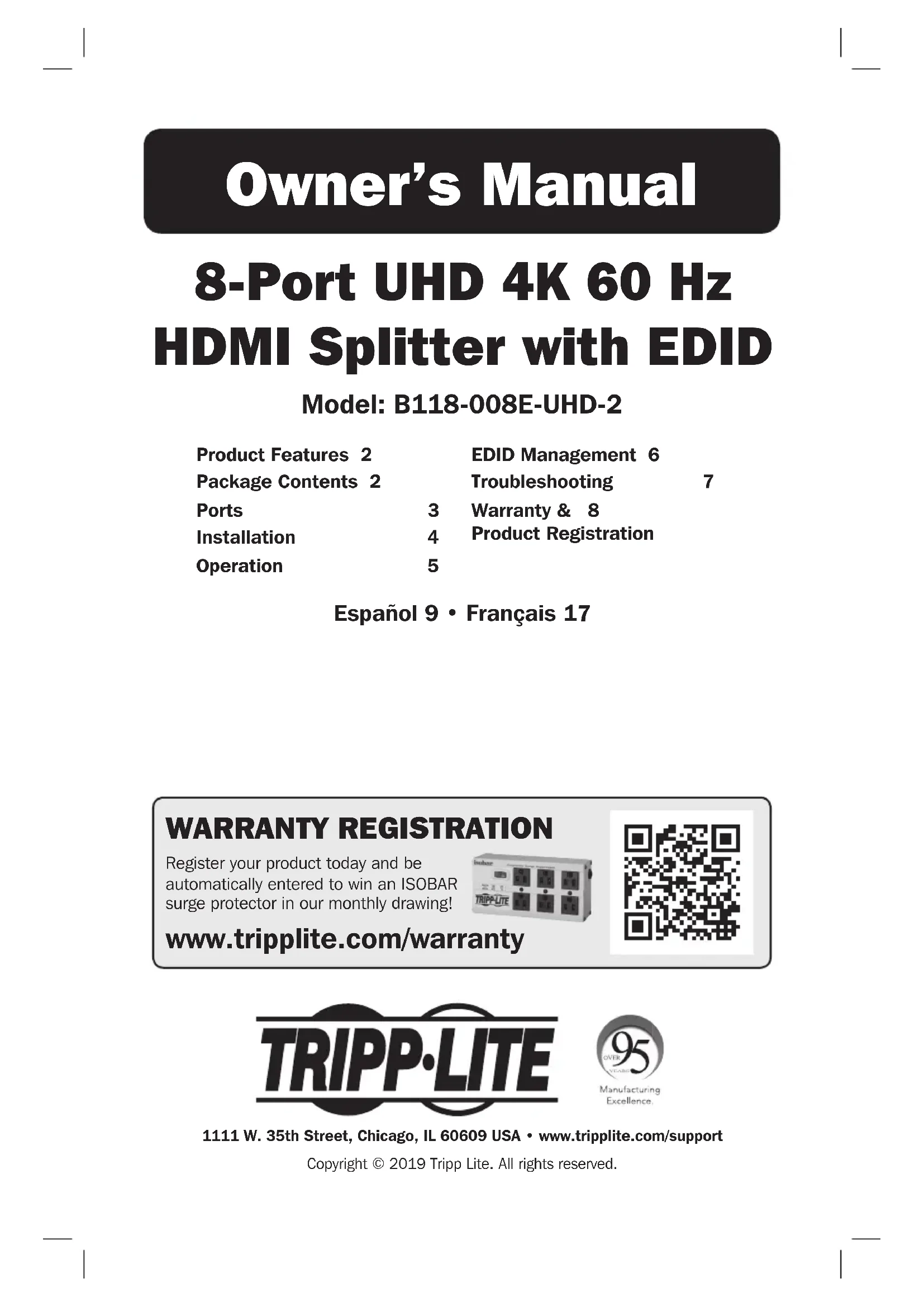 Retrouvez gratuitement la notice de l'appareil B118-008E-UHD-2 Tripp Lite au format PDF.