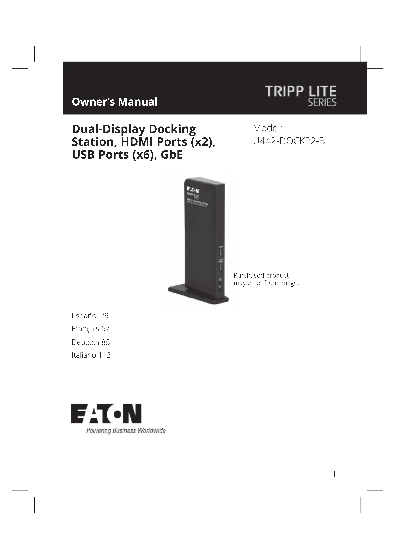MODE D'EMPLOI U442-DOCK22-B Tripp Lite