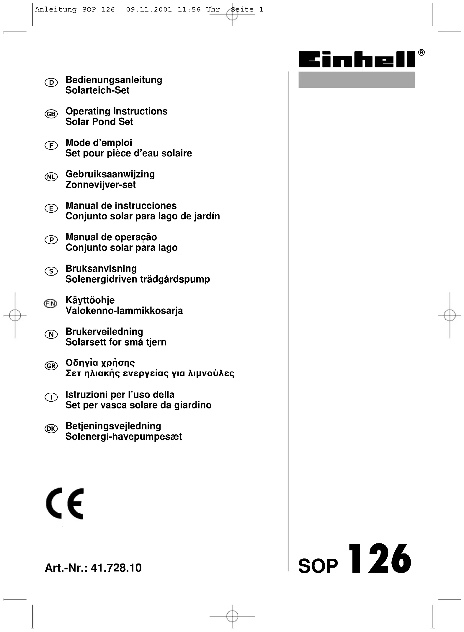 SOP 126 - Panneau solaire EINHELL - Notice d'utilisation et mode d'emploi gratuit