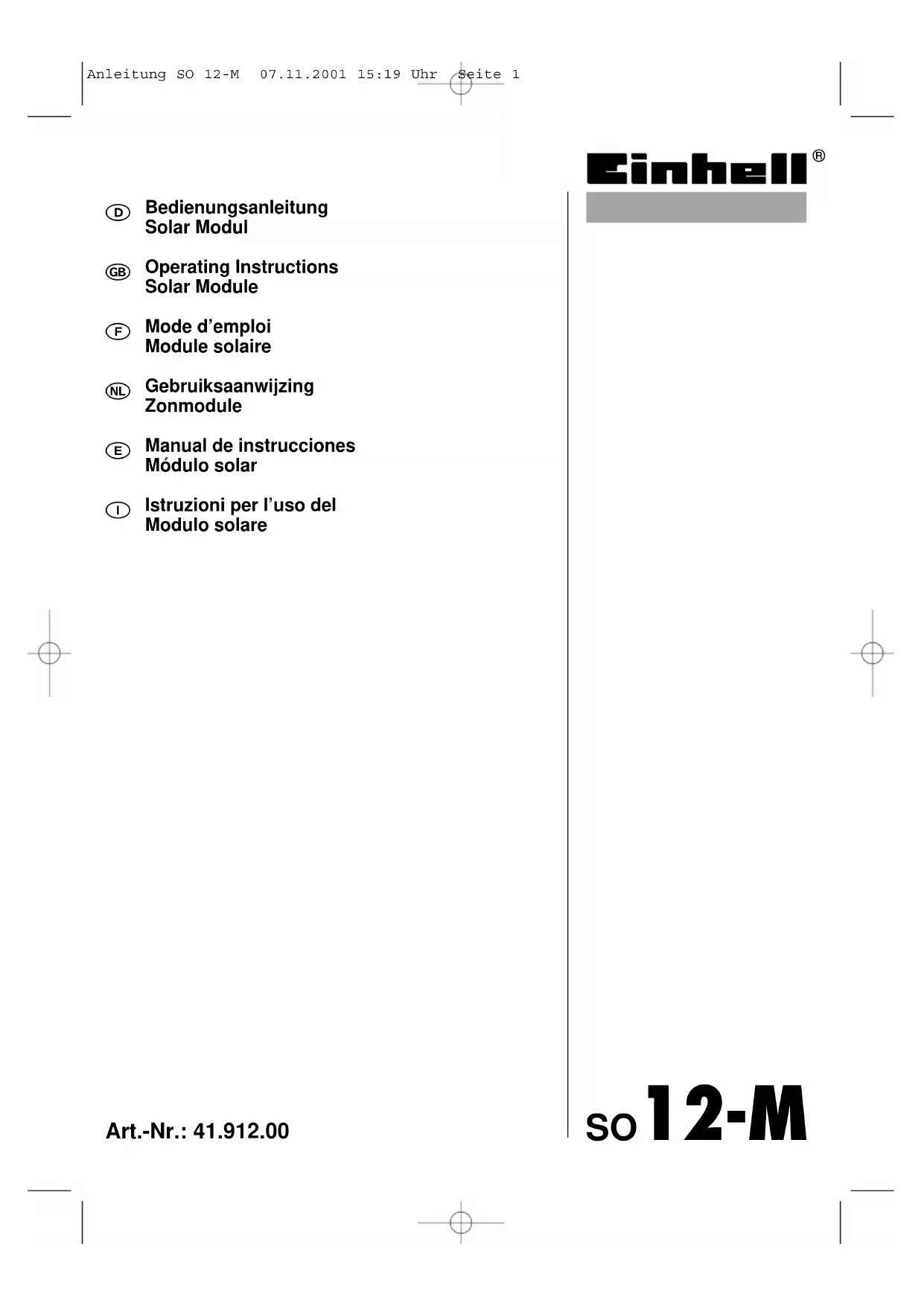 SO 12-M - Panneau solaire EINHELL - Notice d'utilisation et mode d'emploi gratuit