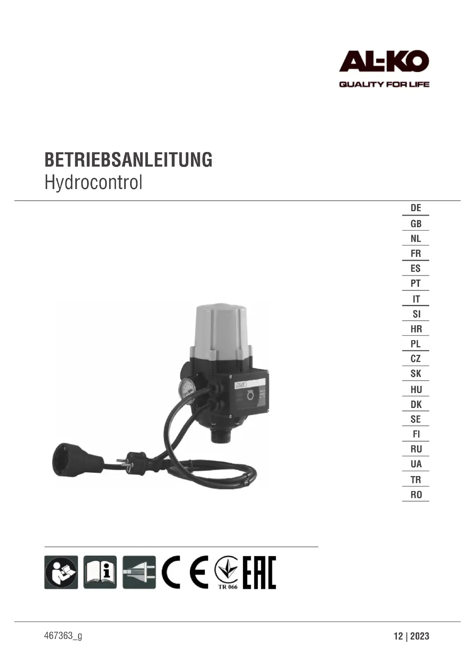 Retrouvez gratuitement la notice de l'appareil Hydrocontrol AL-KO au format PDF.