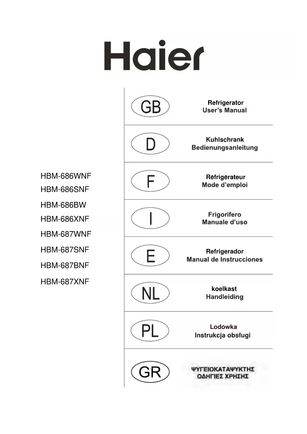 HBM-686XNF - Réfrigérateur HAIER - Notice d'utilisation et mode d'emploi gratuit