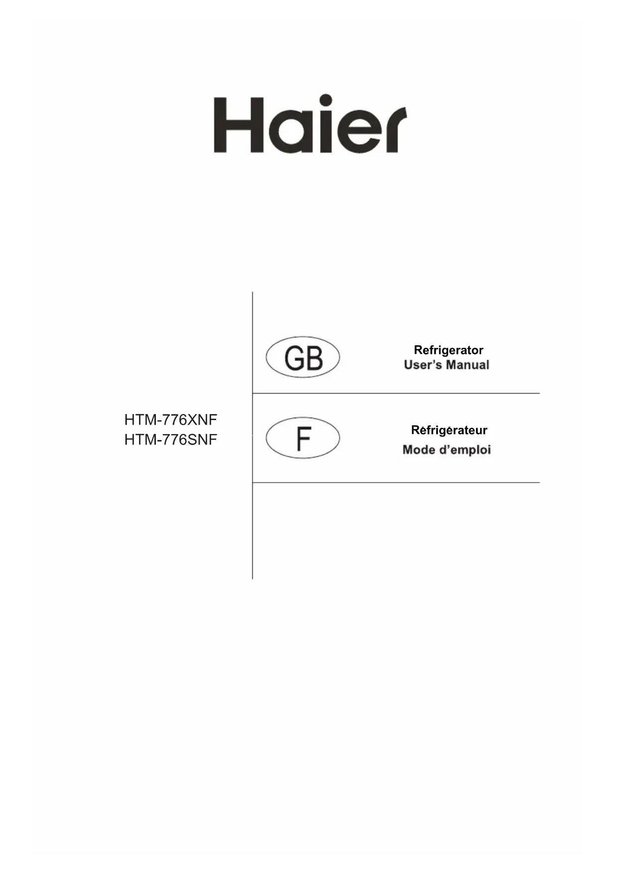HTM-776SNF - Réfrigérateur HAIER - Notice d'utilisation et mode d'emploi gratuit