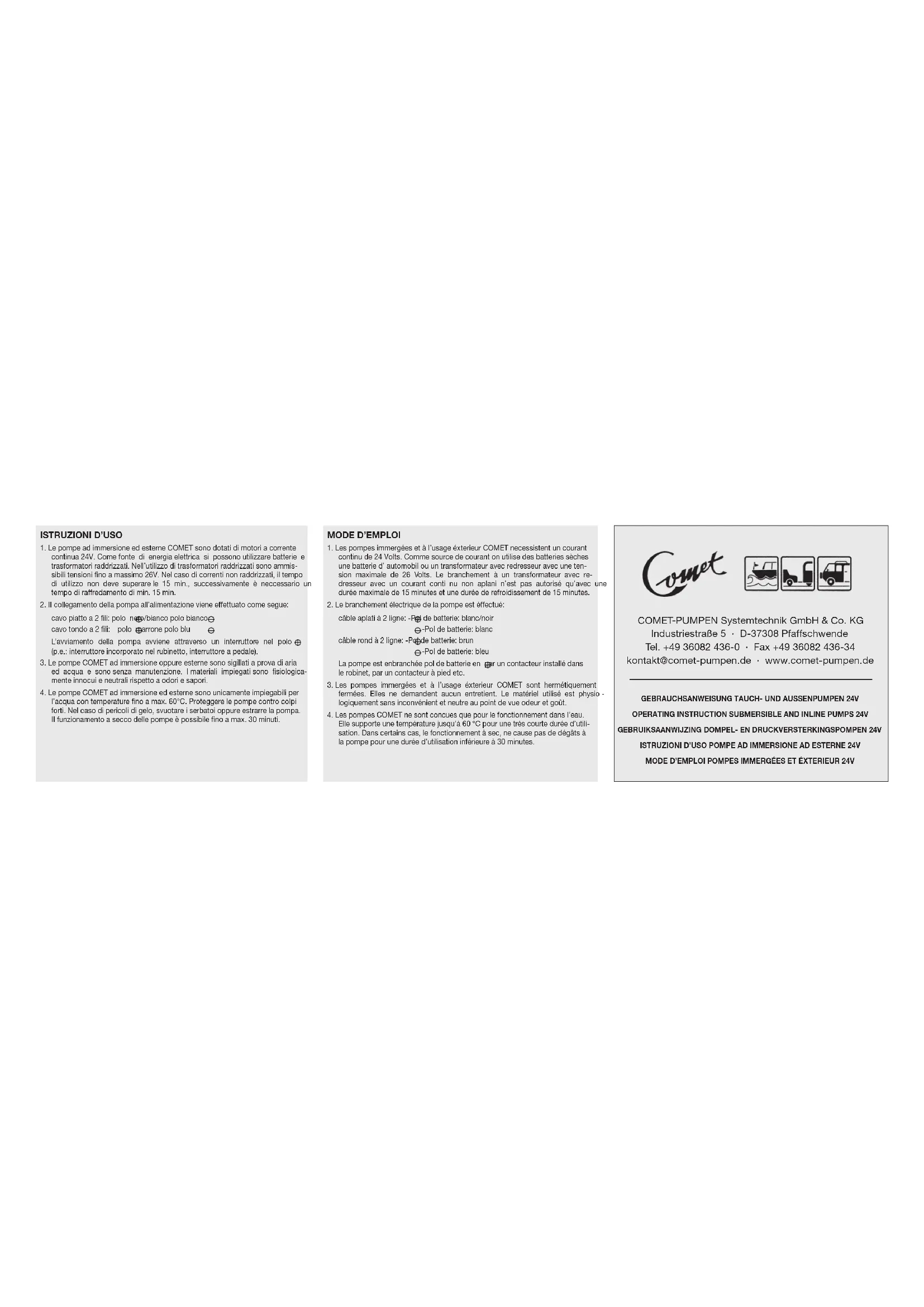 4. Les pompes COMET ne sont concues que pour le fonctionnement dans l’eau.