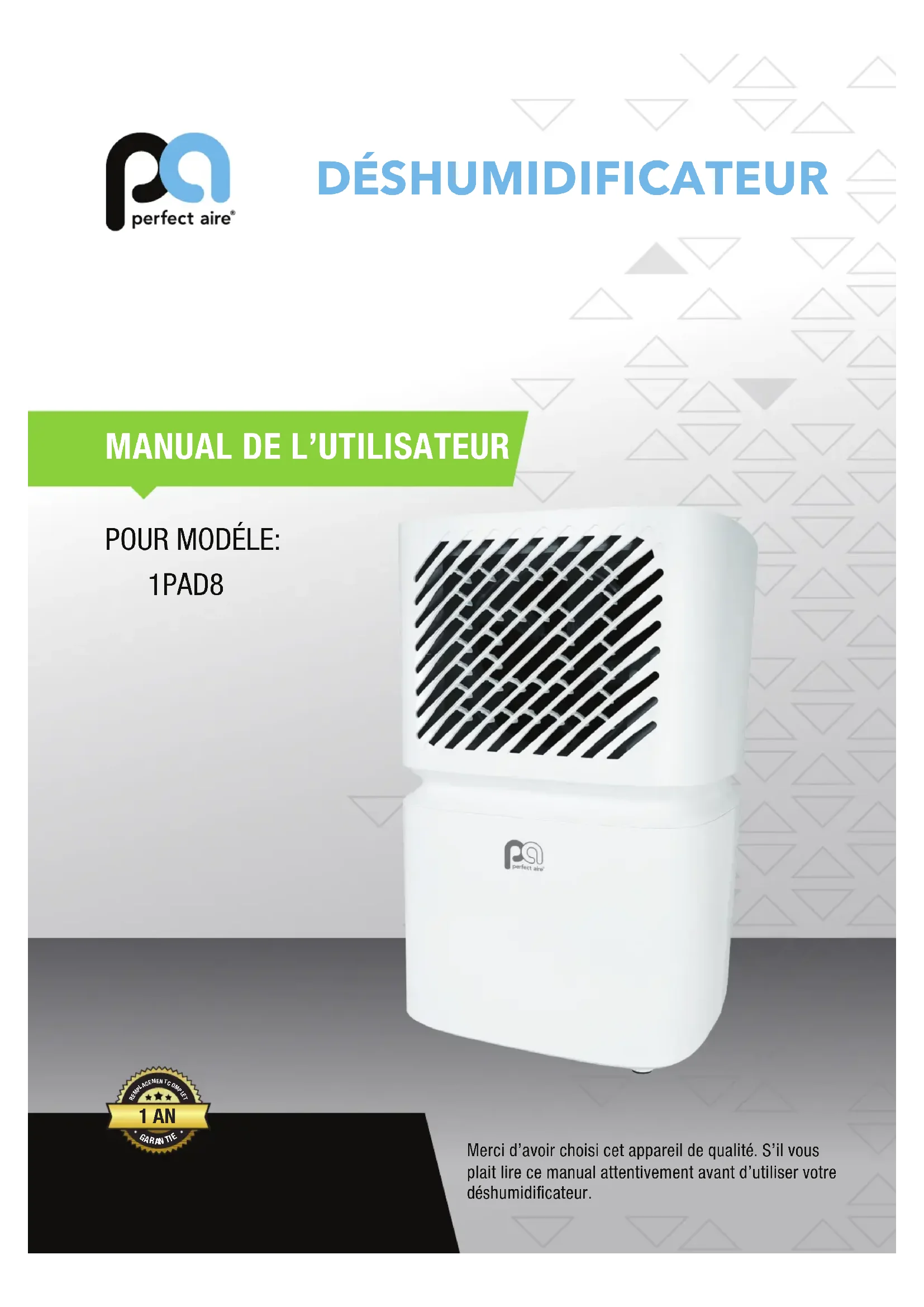 1PAD8 - Déshumidificateur Perfect Aire - Notice d'utilisation et mode d'emploi gratuit