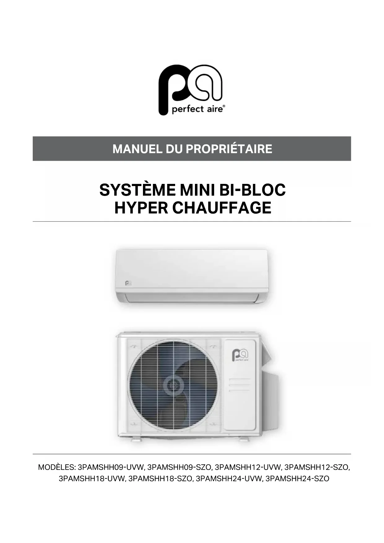 3PAMSHH12-SZO - Climatisation Perfect Aire - Notice d'utilisation et mode d'emploi gratuit