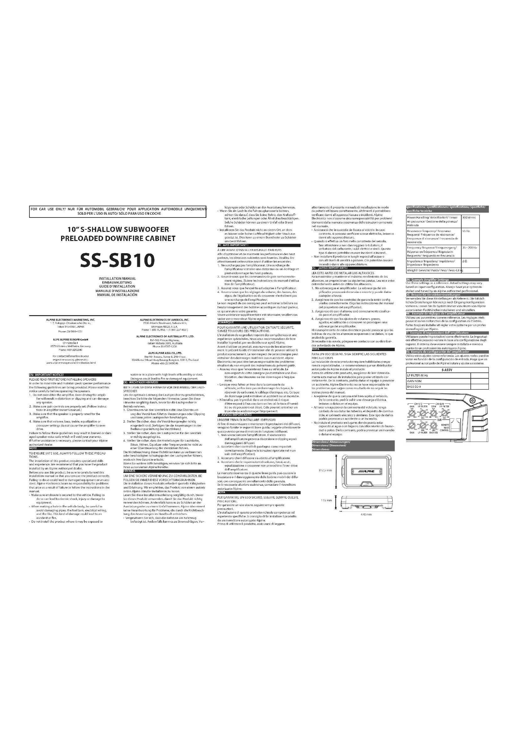 SS-SB10 - Haut-parleur ALPINE - Notice d'utilisation et mode d'emploi gratuit