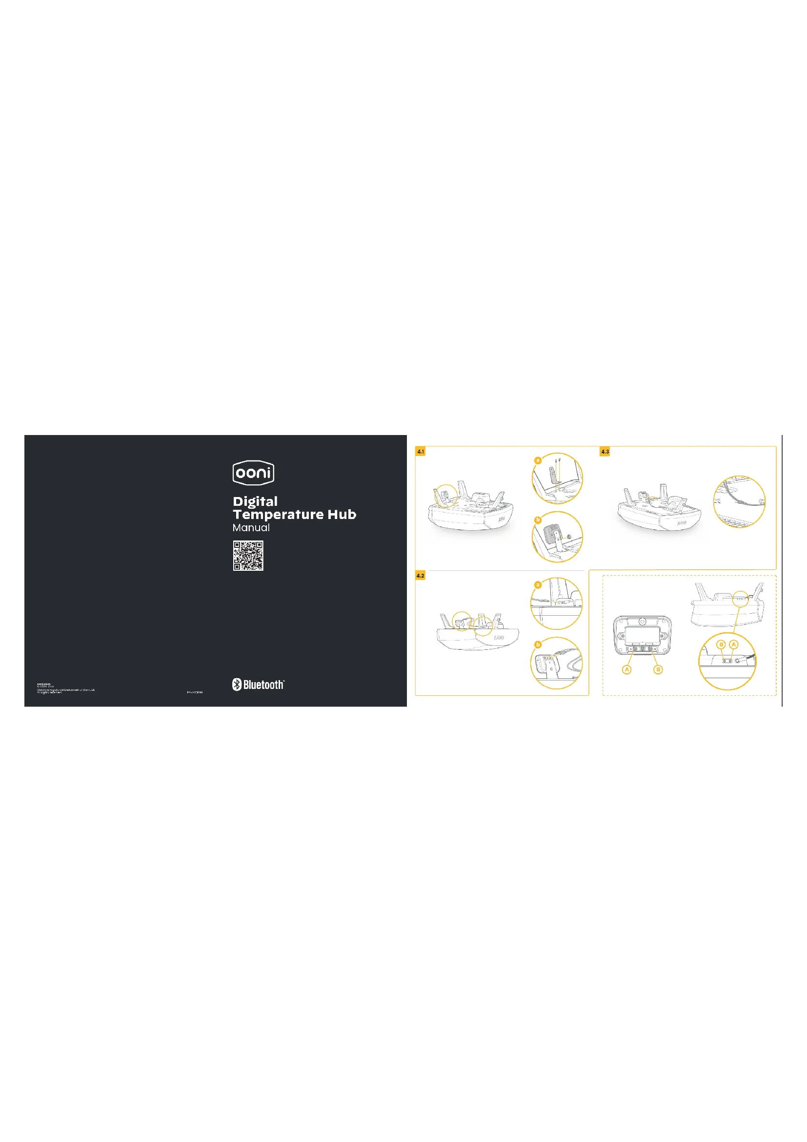 pour supprimer toutes les connexions Bluetooth existantes, puis suivez les étapes pour recommencer. J’ai un problème qui n’est pas répertorié ici. J’ai découvert un nouveau problème Contactez le support.ooni.com CANADIEN4849 AVERTISSEMENT Lisez les instructions avant d'utiliser le hub de température connecté et conservez-les pour pouvoir les consulter ultérieurement. Les sondes alimentaires et les autres parties accessibles peuvent être chaudes et tranchantes. Les jeunes enfants doivent être tenus à l'écart. N'utilisez le hub de température connecté que conformément aux instructions de ce manuel. Pour éviter tout dommage, ne montez le hub de température connecté et n'acheminez les câbles qu'aux endroits indiqués dans ce manuel. Les sondes alimentaires peuvent être utilisées à des températures allant jusqu'à 450 °C (842 °F). Ne pas utiliser à des températures supérieures à celles-ci ou sur des ammes nues. Ne modiez pas le hub de température connecté. ATTENTION ! Lavez et séchez les sondes alimentaires à la main avant la première utilisation. Les sondes alimentaires ne peuvent pas être lavées au lave-vaisselle. N'utilisez pas de produits chimiques ou de détergents abrasifs pour nettoyer les sondes alimentaires. Risque d'explosion si la pile est remplacée par un type de pile incorrect. Le hub de température connecté fonctionne avec les sondes alimentaires Ooni ; les autres accessoires peuvent être imprécis, ne pas fonctionner, ou potentiellement causer des dommages. Utilisez le hub de température connecté pour obtenir des mesures de température précises et immédiates en Celsius (°C) ou en Fahrenheit (°F). Connectez les sondes alimentaires pour obtenir un rôti cuit à feu doux ou un steak parfaitement grillé, et connectez-vous à l'application Ooni pour surveiller tout cela sans avoir à toucher votre four. FRANÇAIS50 51