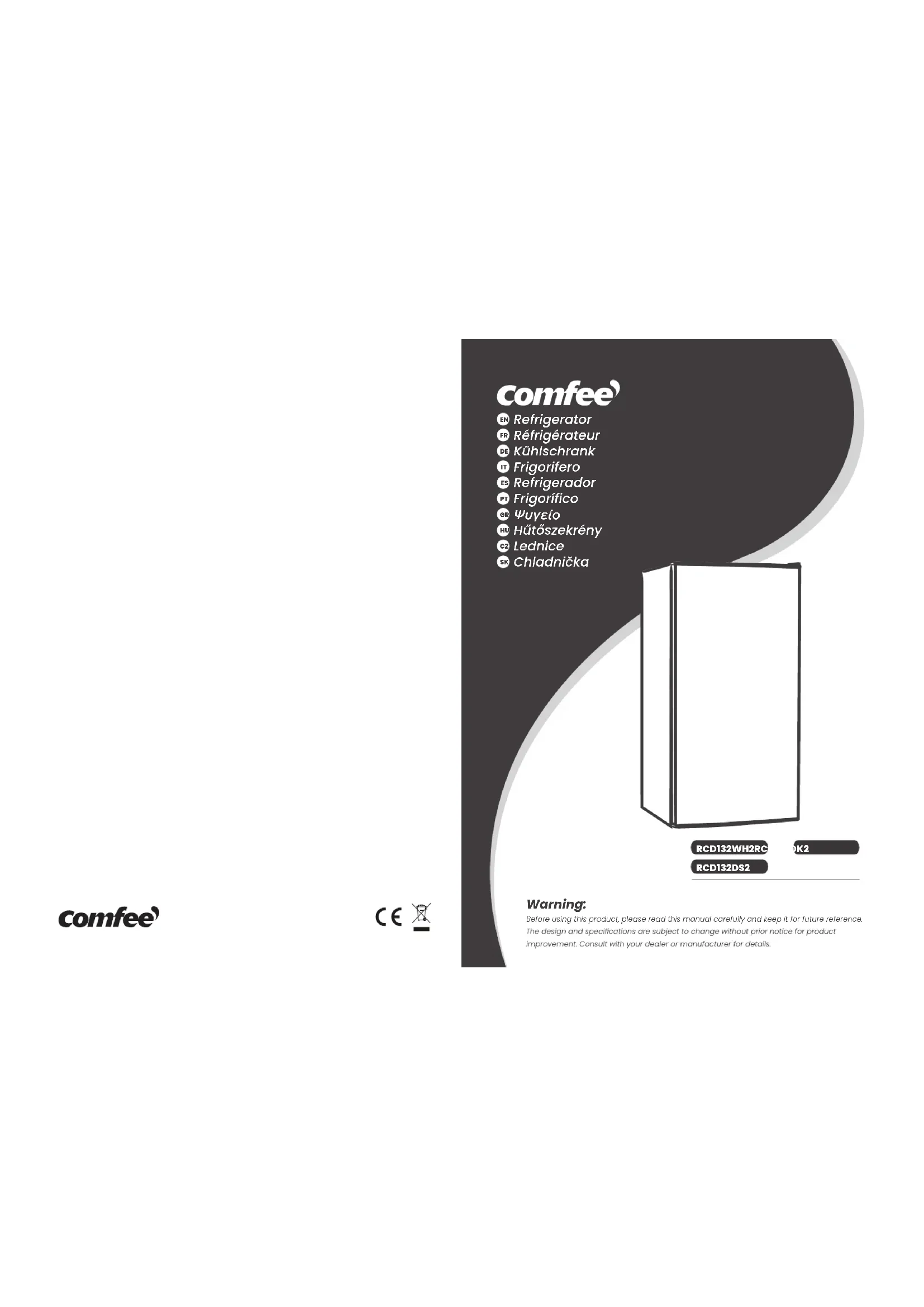 RCD132WH2 - Réfrigérateur COMFEE - Notice d'utilisation et mode d'emploi gratuit