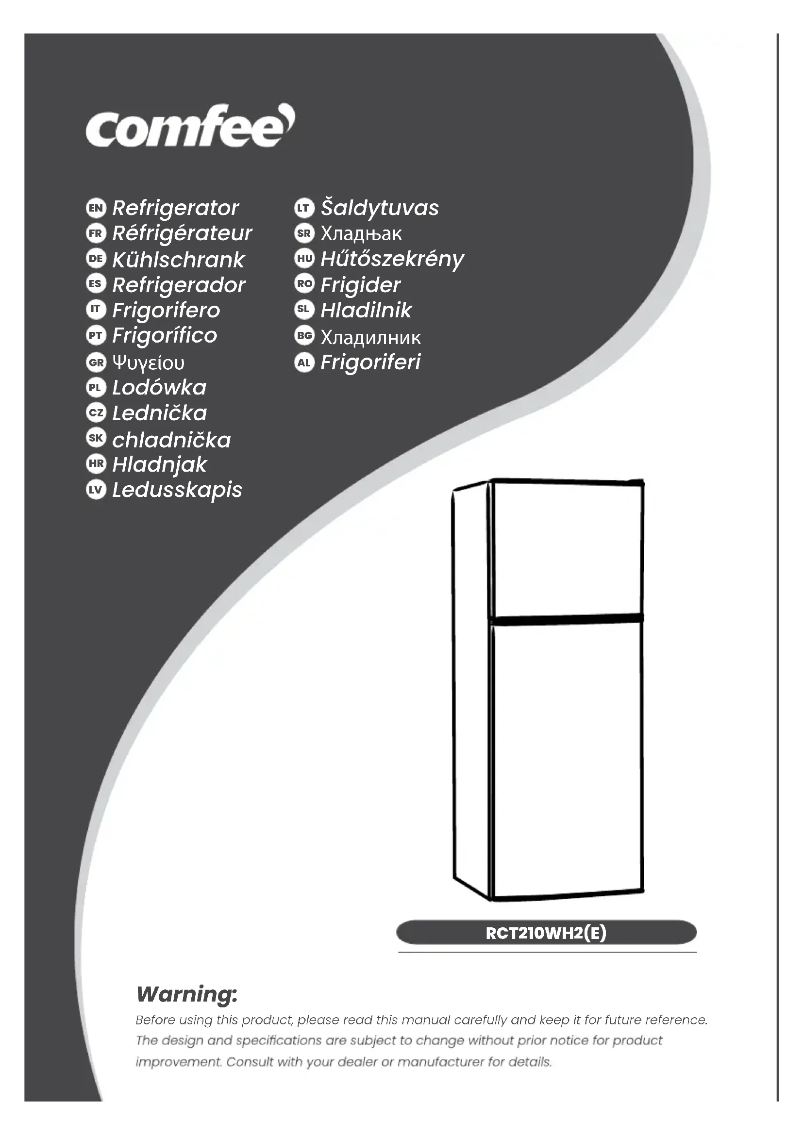 RCT210WH2 - Réfrigérateur COMFEE - Notice d'utilisation et mode d'emploi gratuit