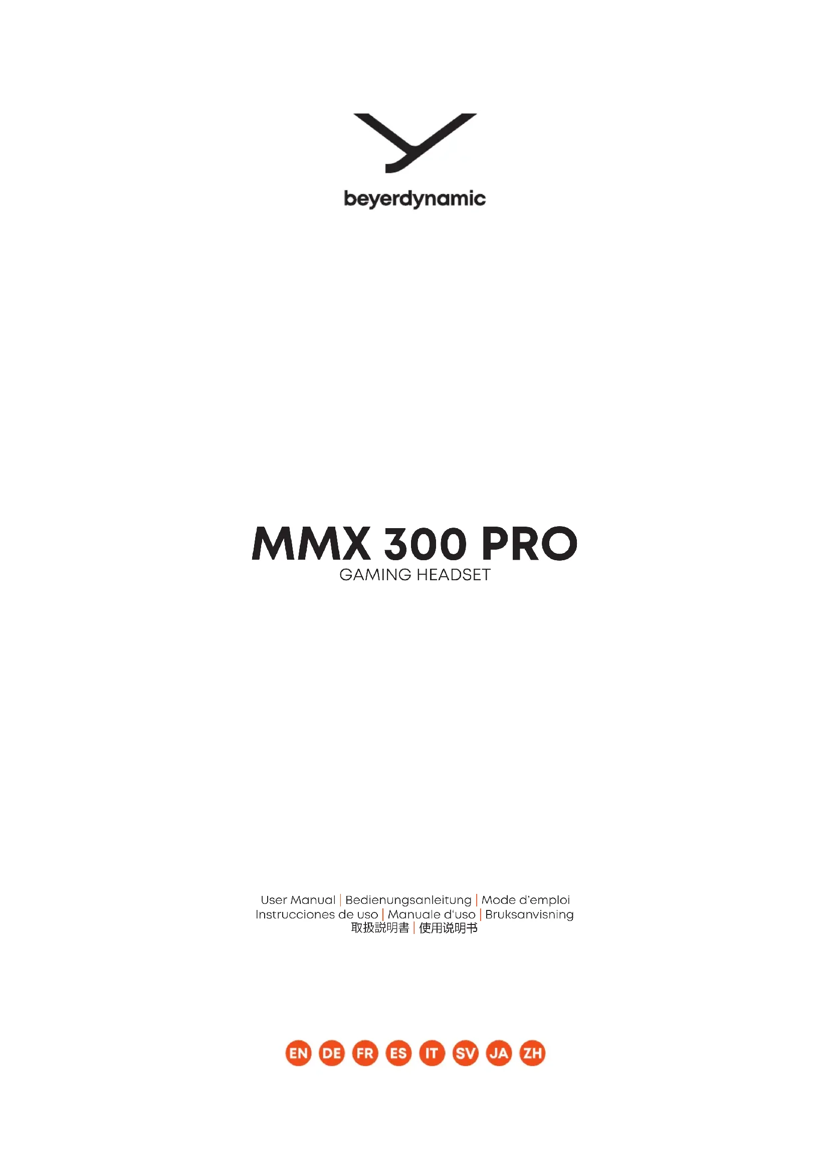 MMX 300 PRO — Casque-micro pour gaming Vous avez choisi le casque-micro pour gaming MMX 300 PRO avec les pilotes STELLAR.45 de beyerdynamic. Nous vous remercions de votre confiance. Veuillez prendre le temps de lire avec attention ces informations avant d’utiliser l’appareil.