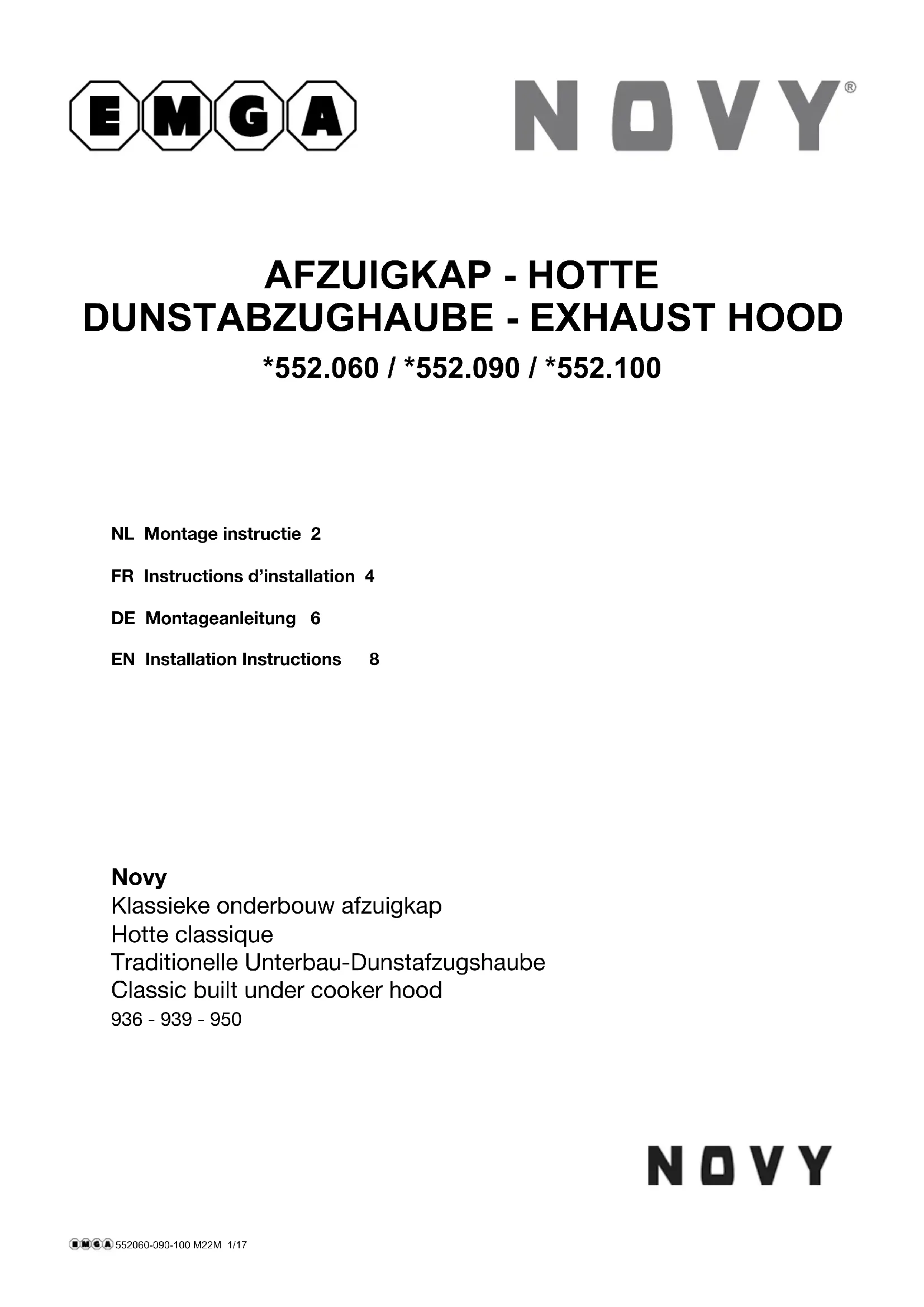552100 - Hotte NOVY - Notice d'utilisation et mode d'emploi gratuit