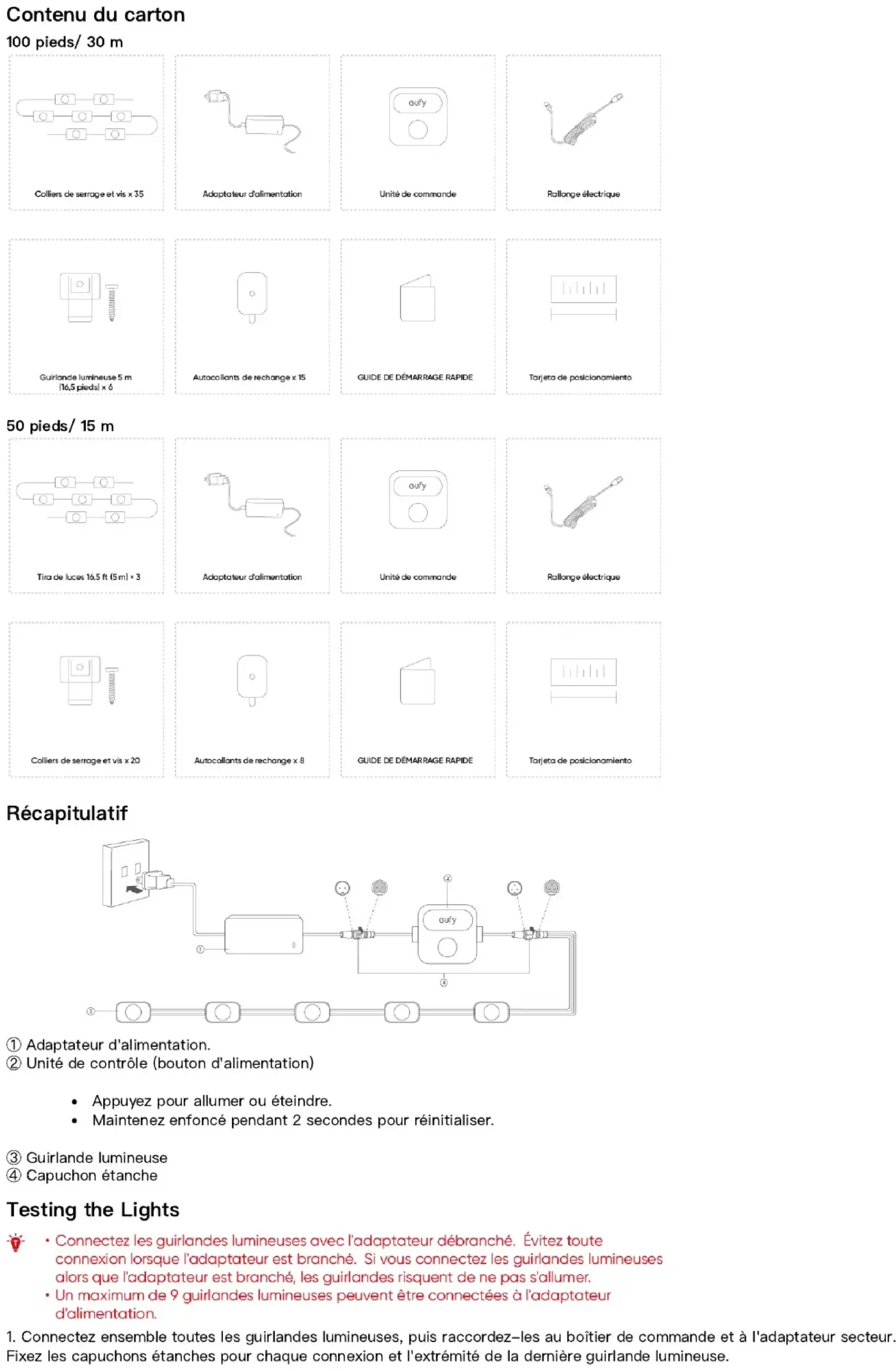 Contenu du carton 100pieds/ 30m 50pieds/ 15m Récapitulatif