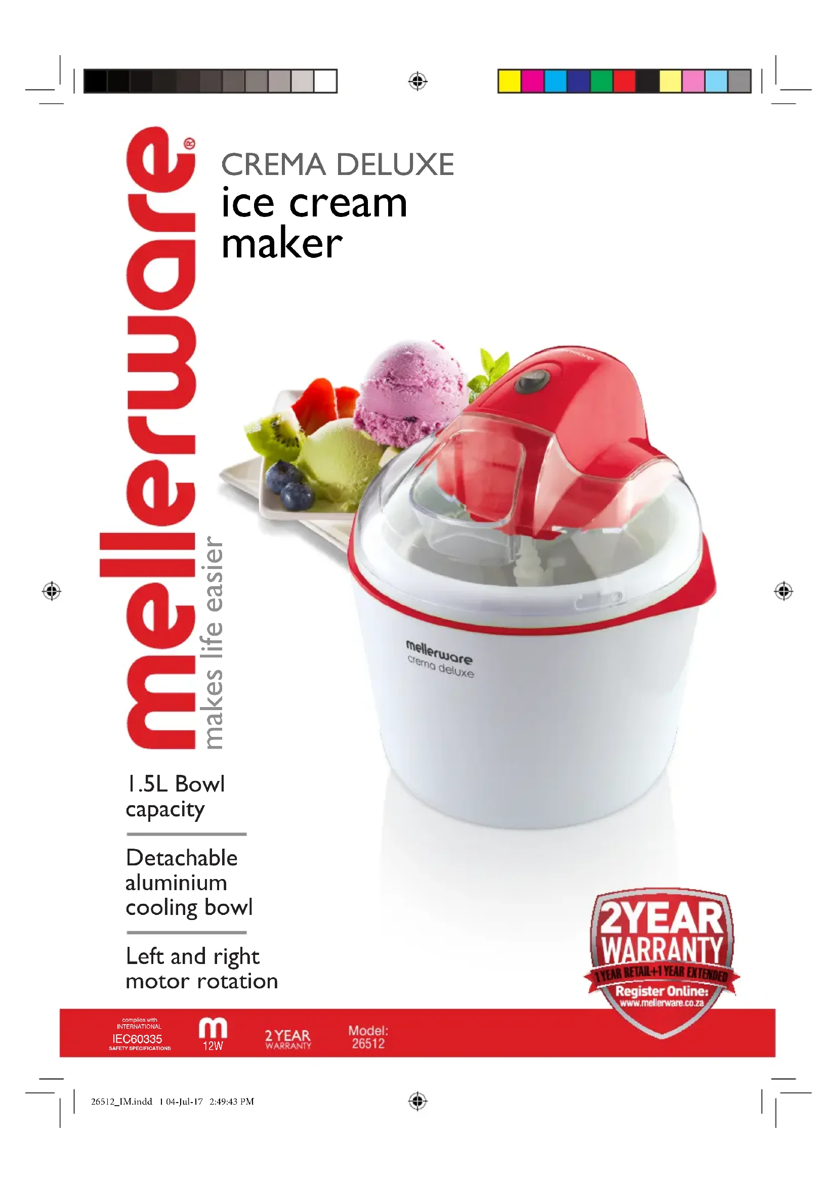 5.1. Lleve el aparato a un servicio de asistencia técnica autorizado si el producto está dañado o si surgen otros problemas. 5.2. Si la conexión a la red ha sido dañada, debe ser reemplazada y debe proceder como lo haría en caso de daños. 26512_IM.indd 12 04-Jul-17 2:49:44 PMCher client, Merci d’avoir choisi d’acheter un produit de marque Mellerware. Grâce à sa technologie, sa conception et son fonctionnement et le fait qu’elle dépasse les normes de qualité les plus strictes, une utilisation parfaitement satisfaisante et une longue durée de vie du produit peuvent être assurées.