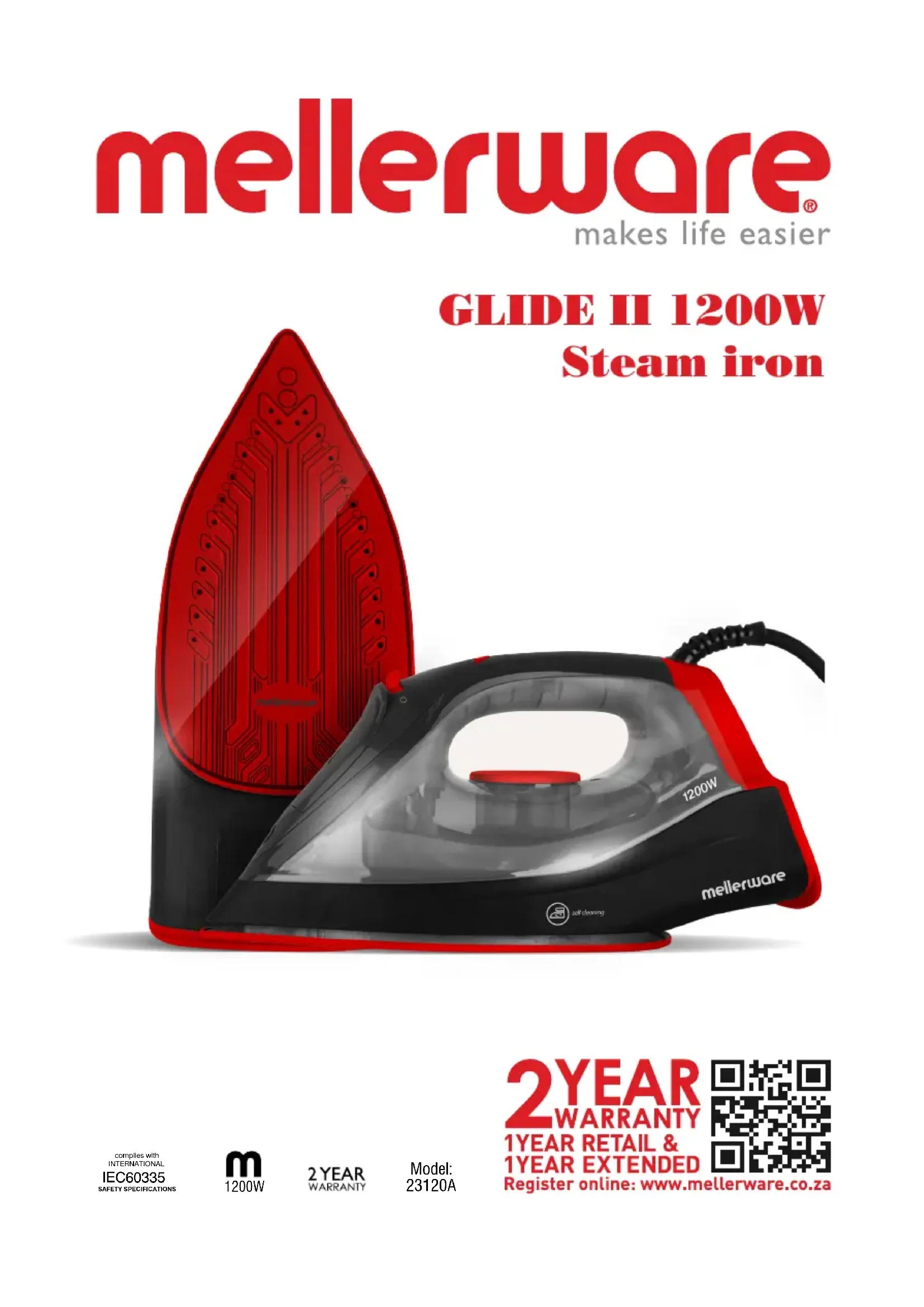 Glide II 23120A - Fer à repasser Mellerware - Notice d'utilisation et mode d'emploi gratuit