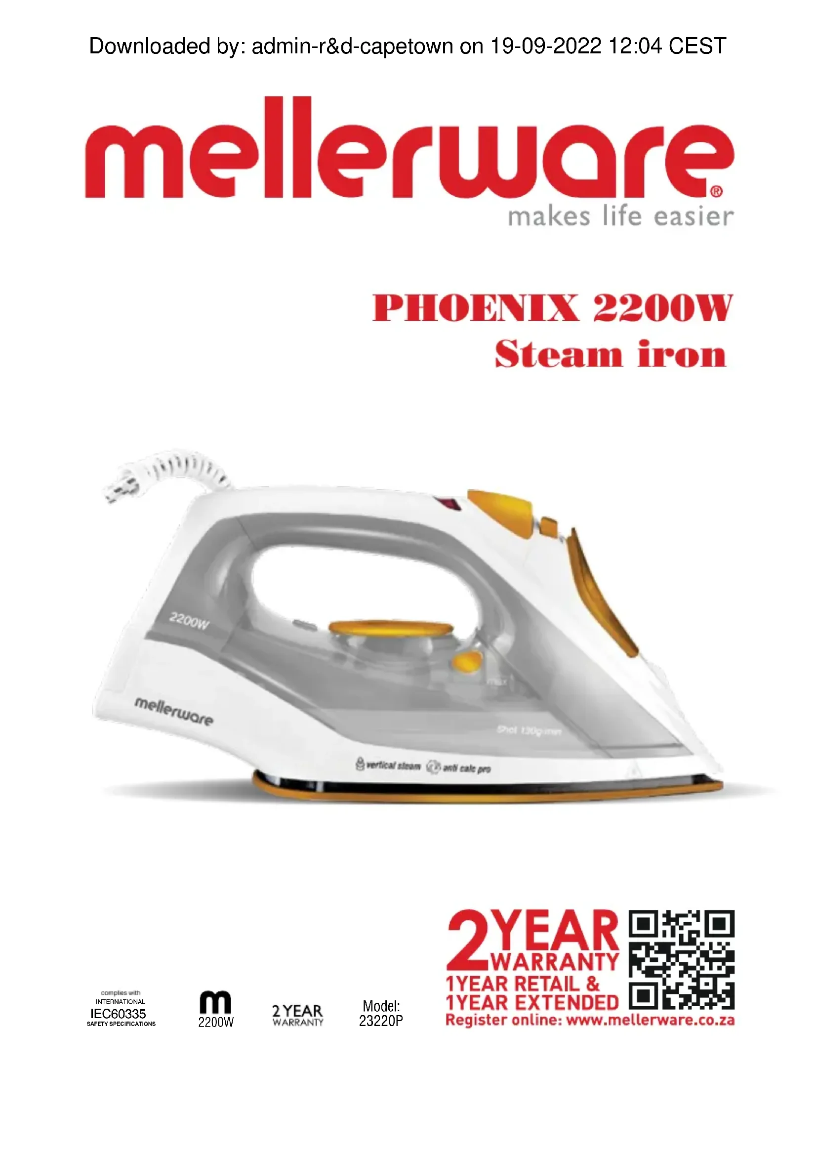 23220P - Fer à repasser Mellerware - Notice d'utilisation et mode d'emploi gratuit