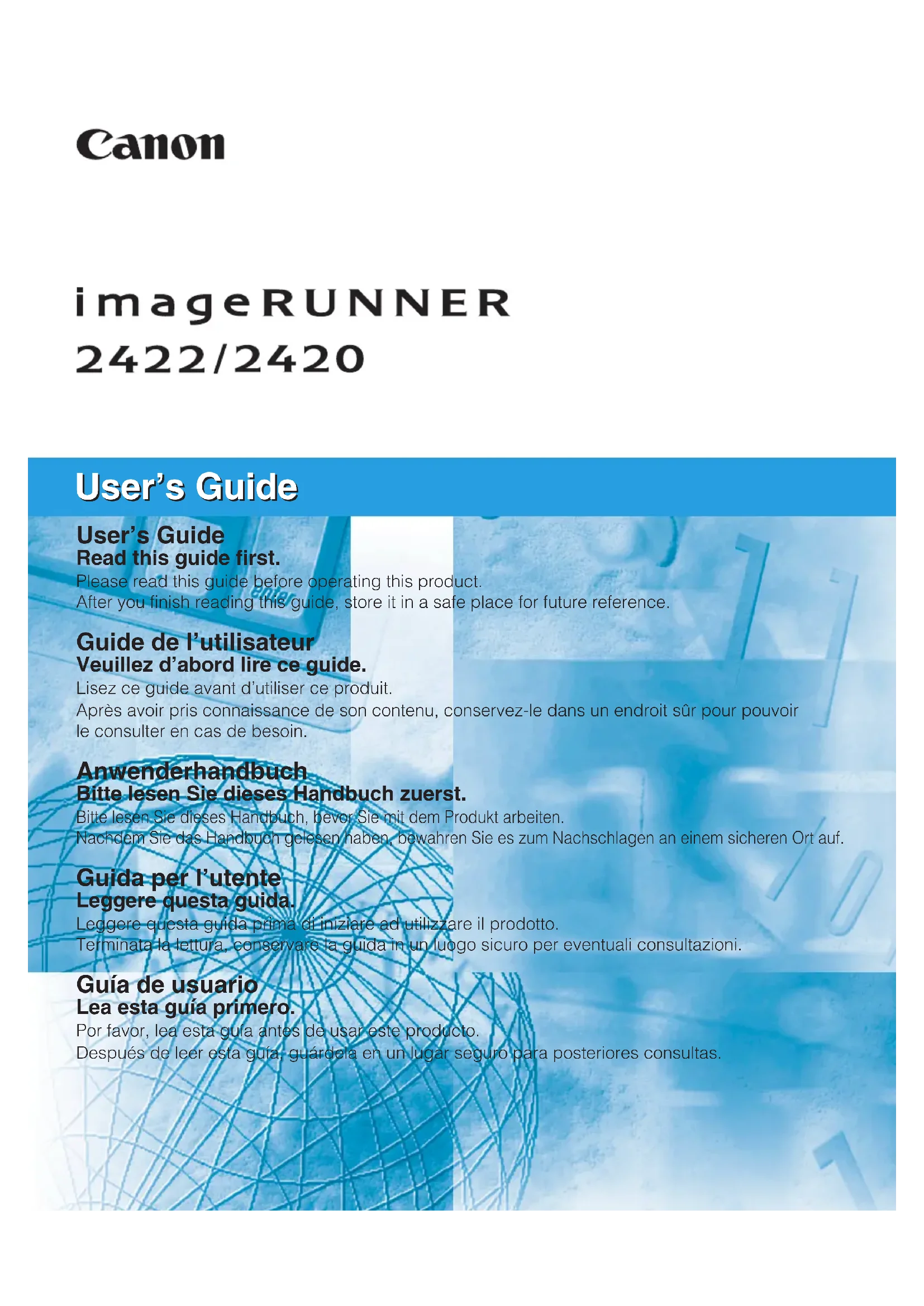 Retrouvez gratuitement la notice de l'appareil imageRUNNER 2422 CANON au format PDF.