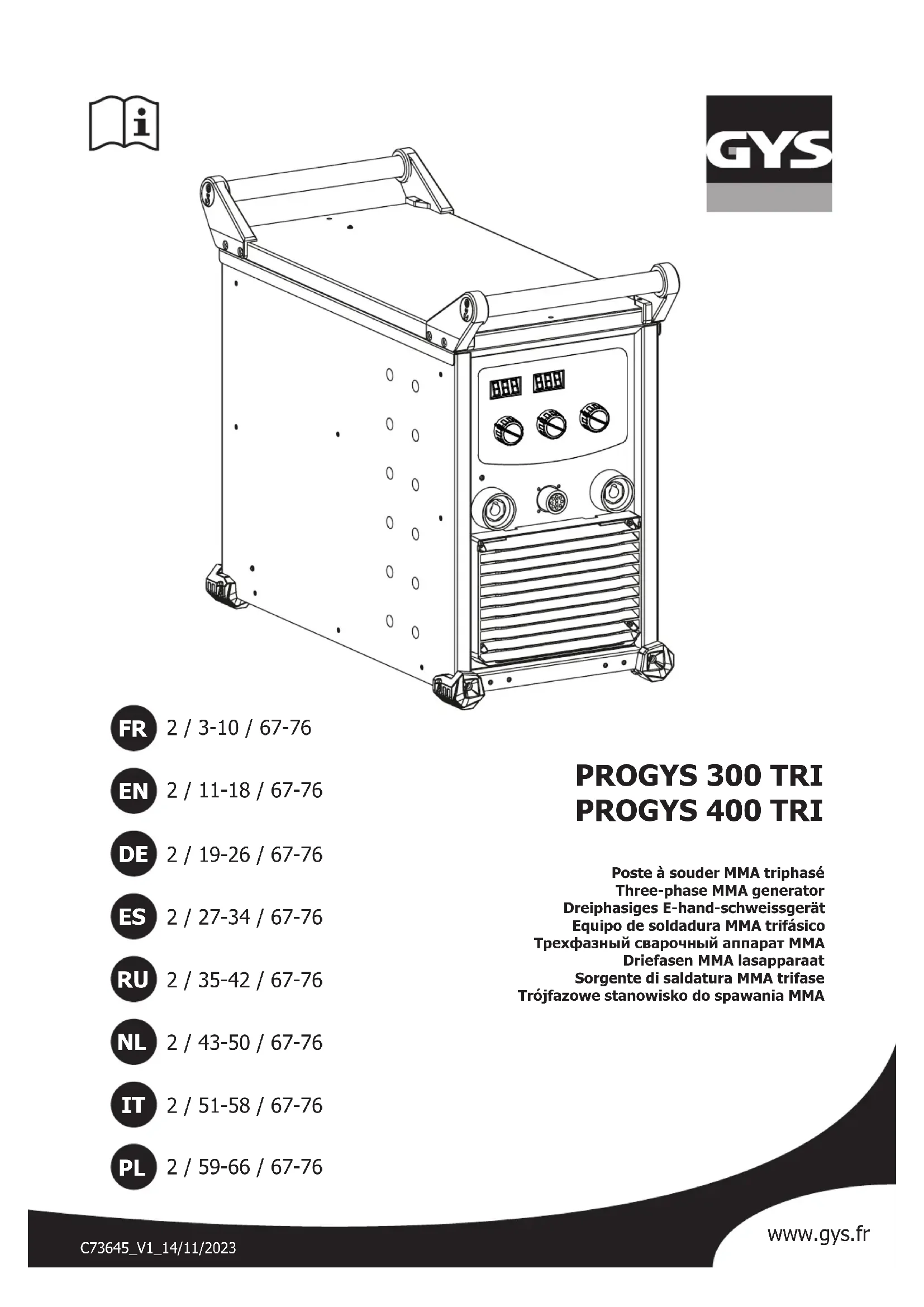 Retrouvez gratuitement la notice de l'appareil PROGYS 400 TRI GYS au format PDF.