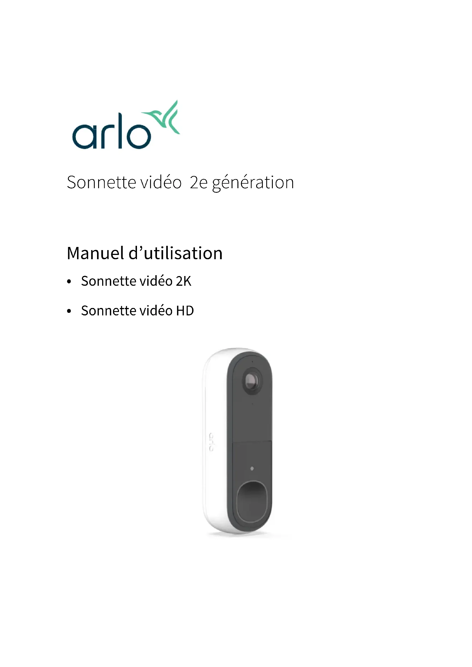 Retrouvez gratuitement la notice de l'appareil 2K Wireless Video Doorbell ARLO au format PDF.