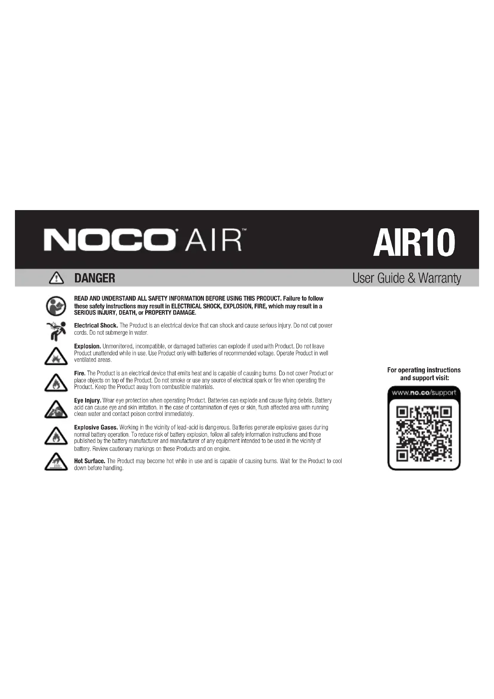 Retrouvez gratuitement la notice de l'appareil AIR10 NOCO au format PDF.