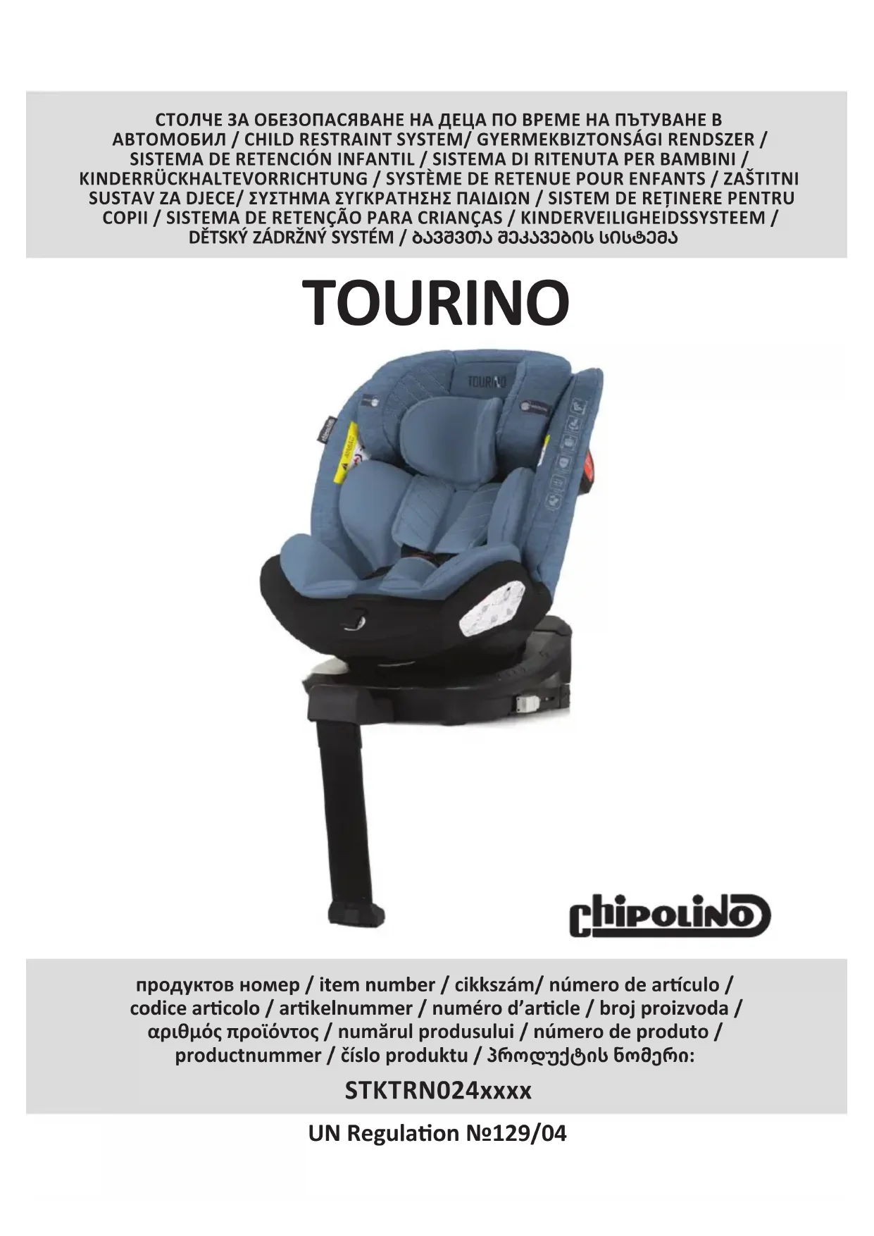Tourino - Siège de voiture Chipolino - Notice d'utilisation et mode d'emploi gratuit