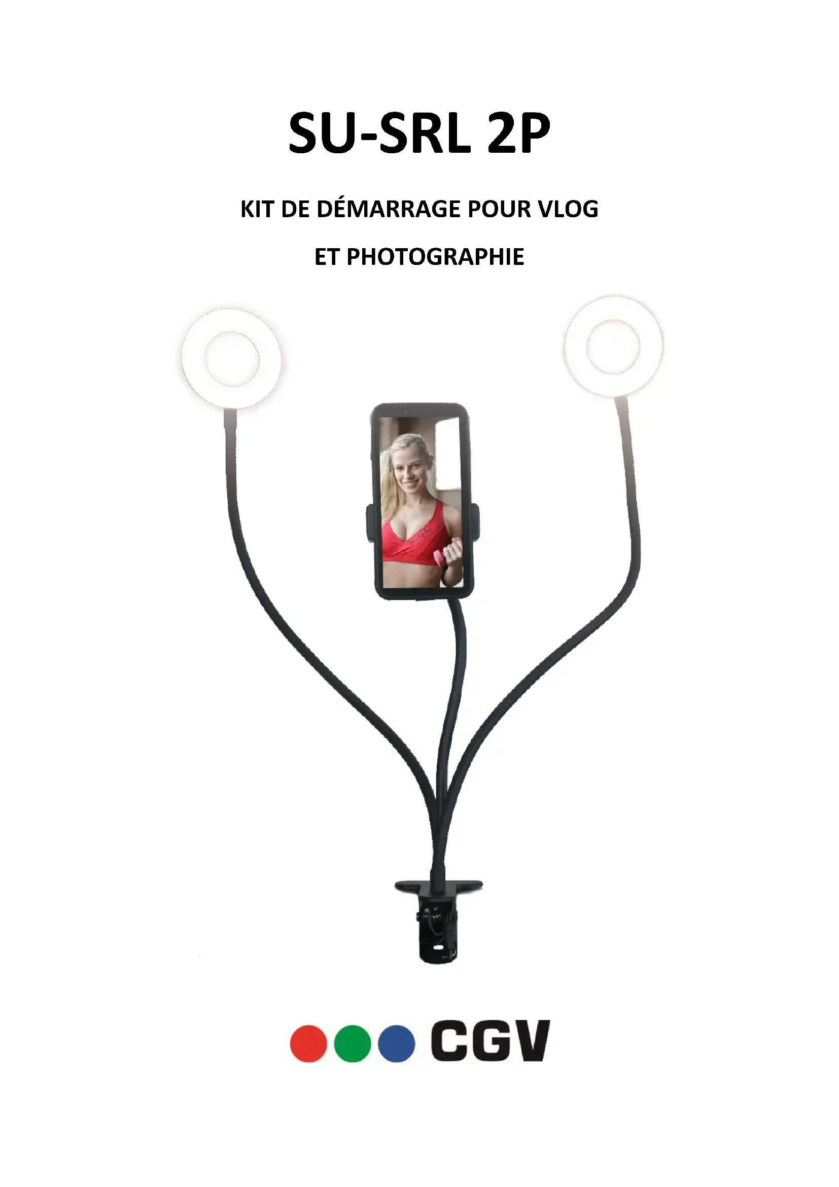 Pour effectuer une prise de vue : - Clipsez le double anneau lumineux à un support parfaitement stable (table, bureau …). Assurez- vous que le dispositif tienne bien en place. - Branchez la télécommande filaire de l’anneau sur un bloc secteur USB. Nous vous conseillons d’utiliser un bloc secteur +5V pouvant fournir entre 1 et 1,5A environ. - Placez votre smartphone sur le bras articulé, en écartant la pince de fixation. Assurez-vous que votre smartphone est correctement maintenu. - Allumez l’anneau lumineux et réglez le mode d’éclairage et la luminosité en fonction de votre application. - Ouvrez l’application appareil photo de votre smartphone et activez le mode photo ou vidéo. - Prenez une photo ou démarrez l’enregistrement de la vidéo. NOTE : pour une utilisation plus aisée, vous pouvez utiliser le mode retardateur de l’appareil photo de votre smartphone. En cas de problème Dans tous les cas, veuillez ne pas essayer de réparer vous-même le produit, cela invaliderait la garantie. Si vous ne parvenez pas à résoudre le problème, veuillez contacter CGV :