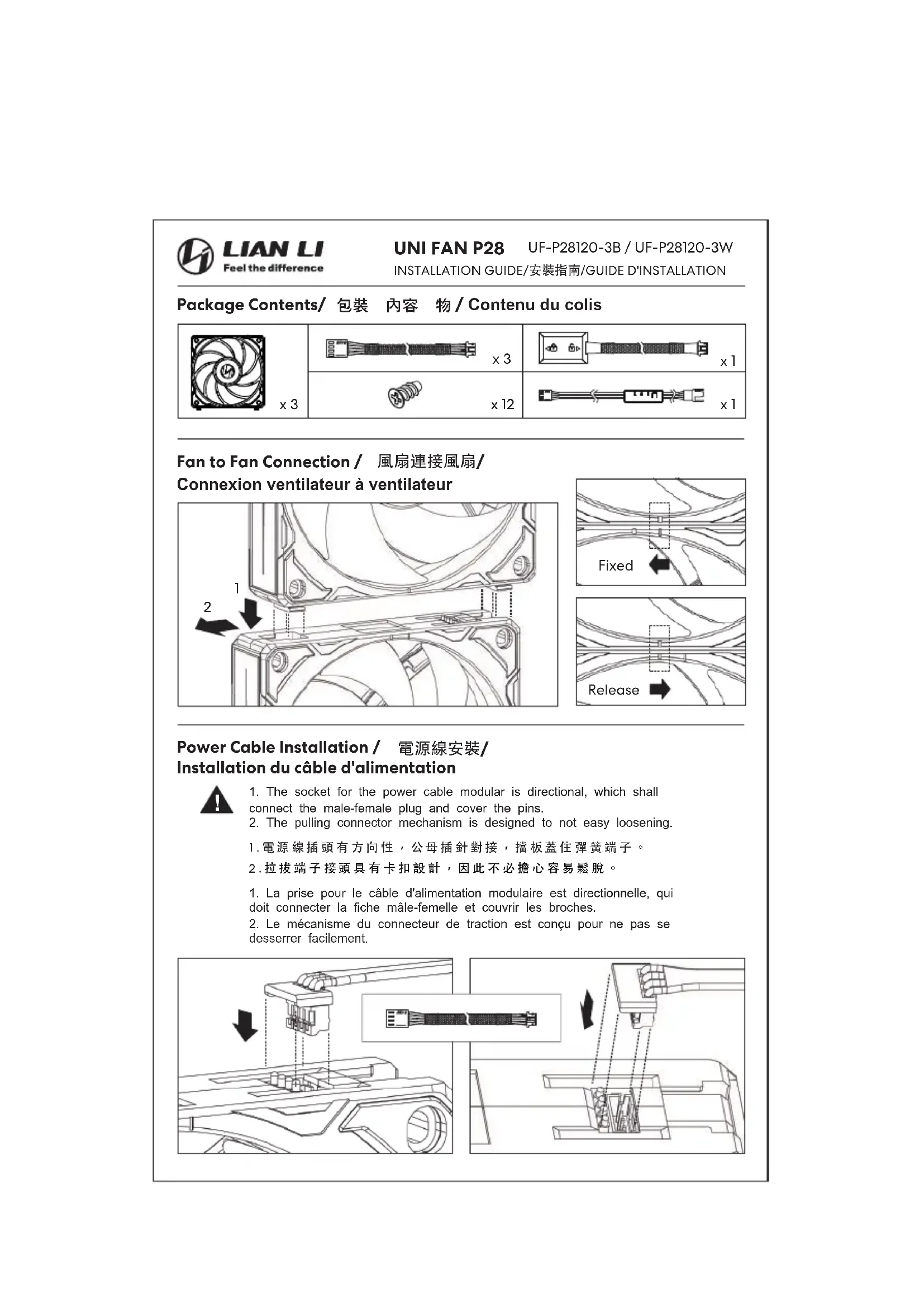 Retrouvez gratuitement la notice de l'appareil UNI FAN P28 Lian Li au format PDF.