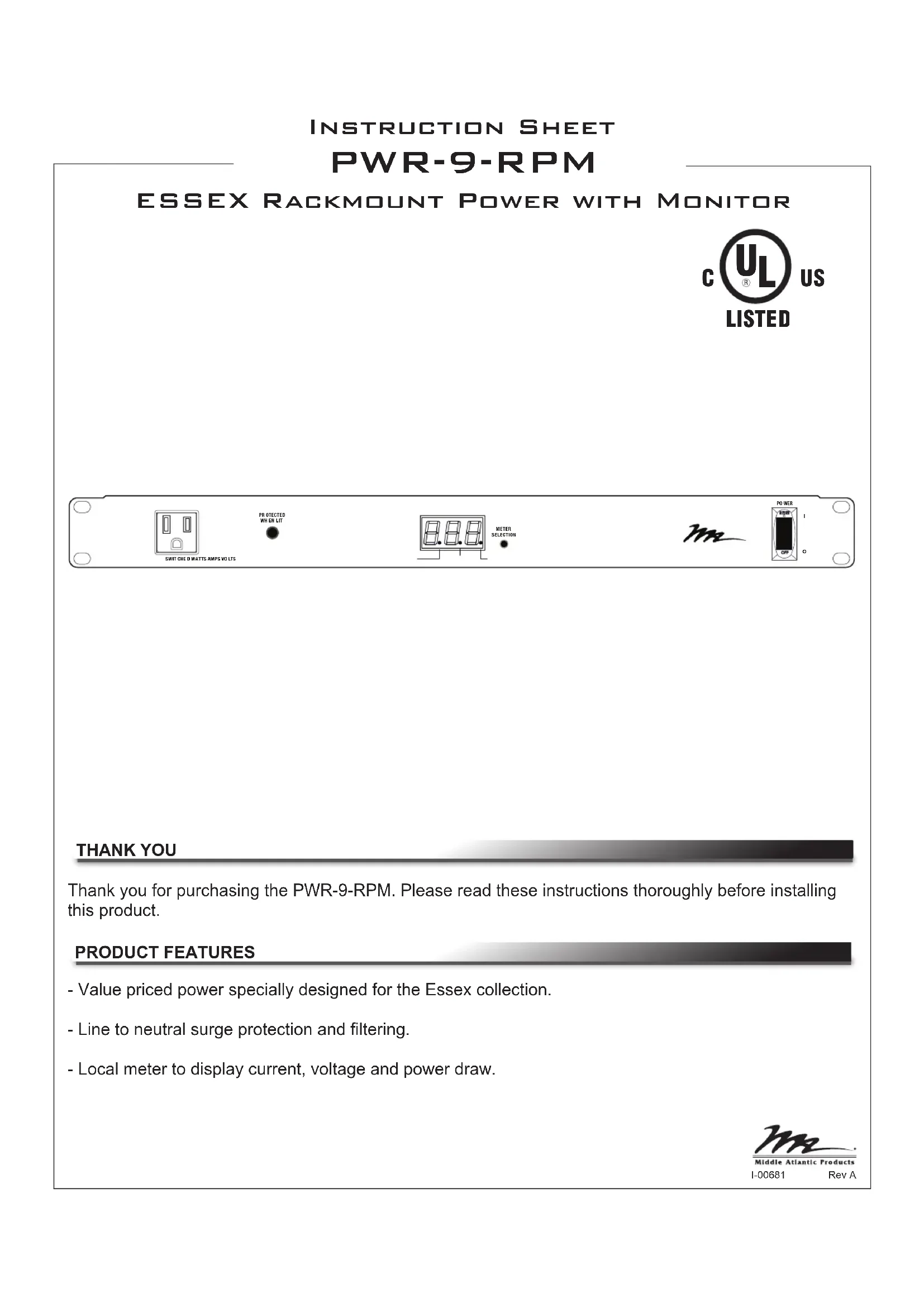 MODE D'EMPLOI PWR-9-RPM Middle Atlantic